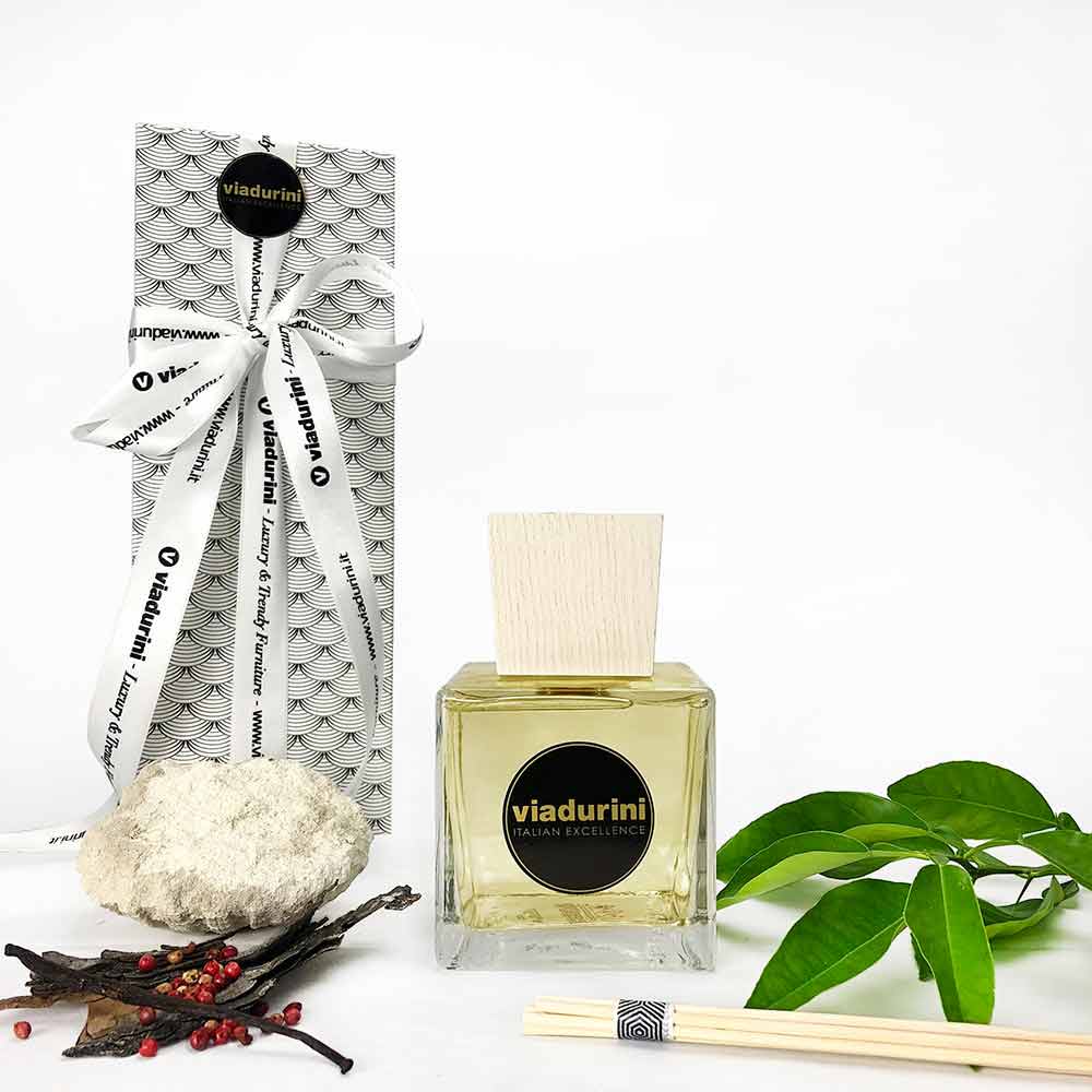 Fragrância doméstica oriental e âmbar com palitos - essência Made in Italy.