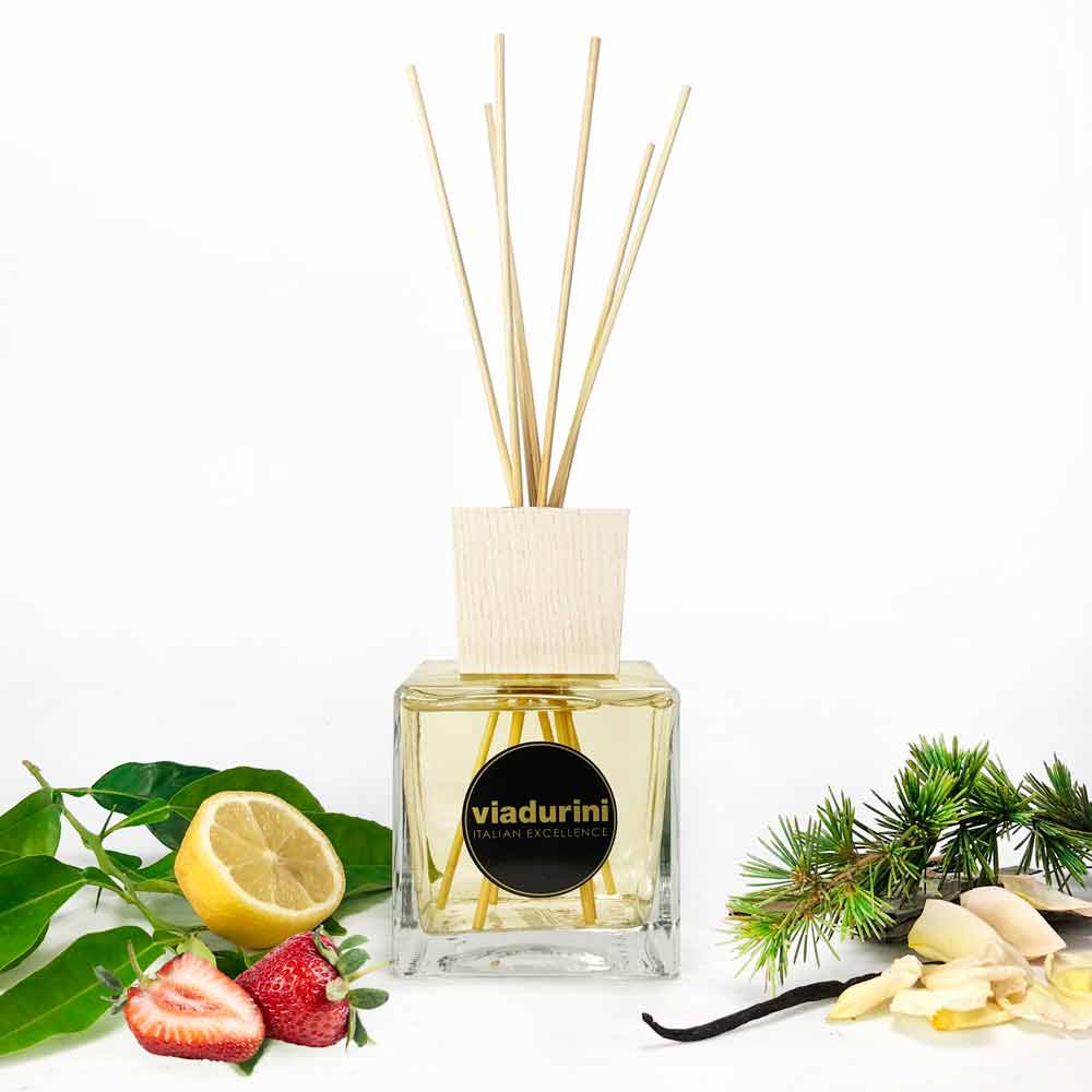 Fragrância doméstica com fragrância floral rosa com bastões - Essência Made in Italy.