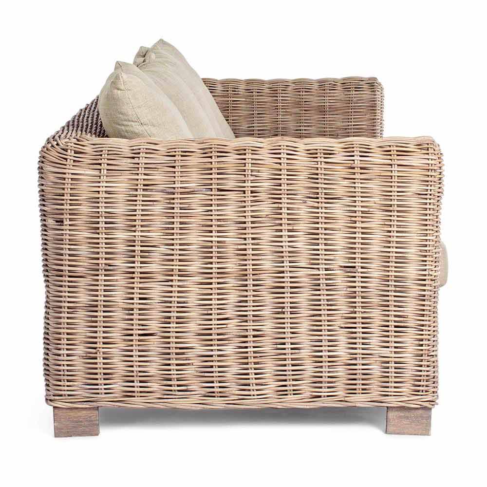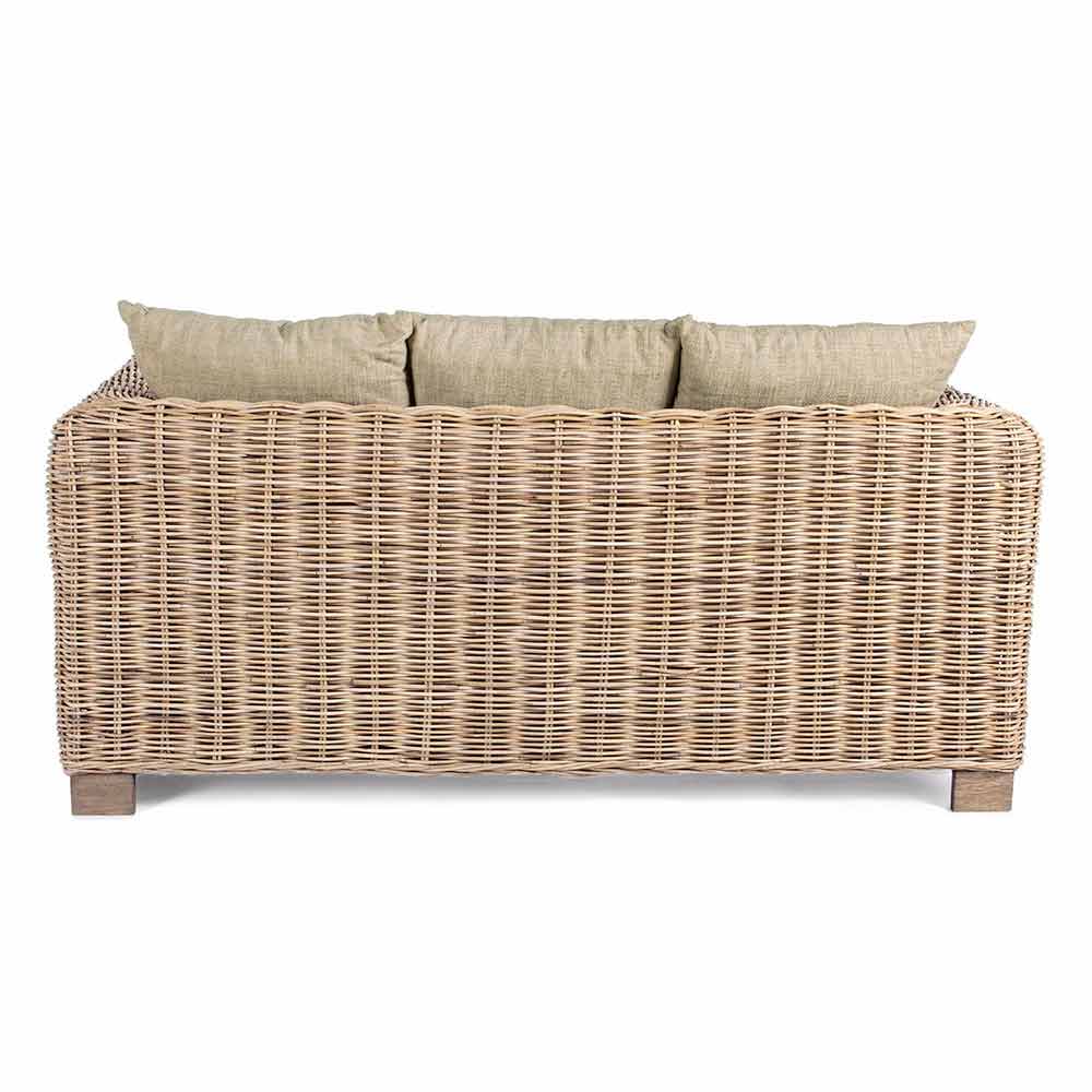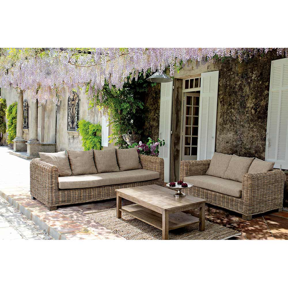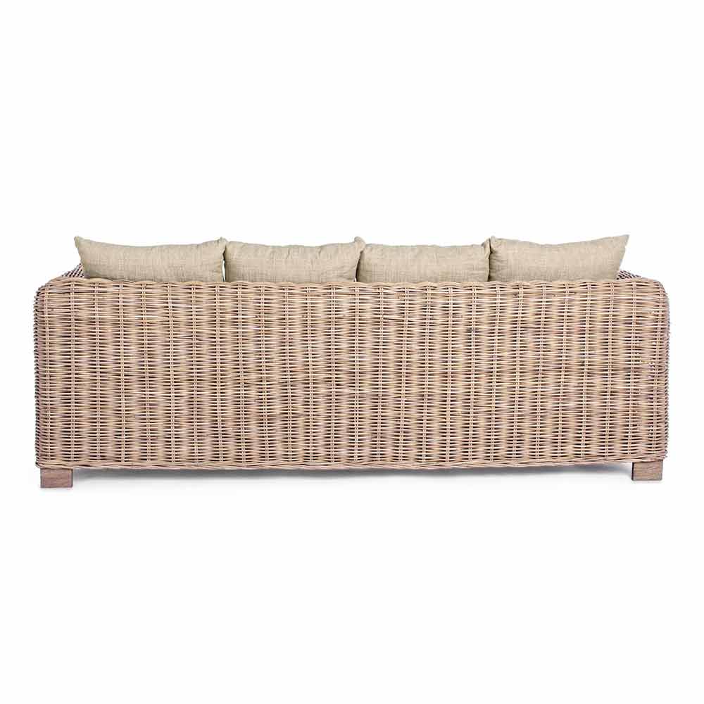 Sofá de jardim de estilo étnico para uso interno ou externo, feito de vime e madeira de manga.
