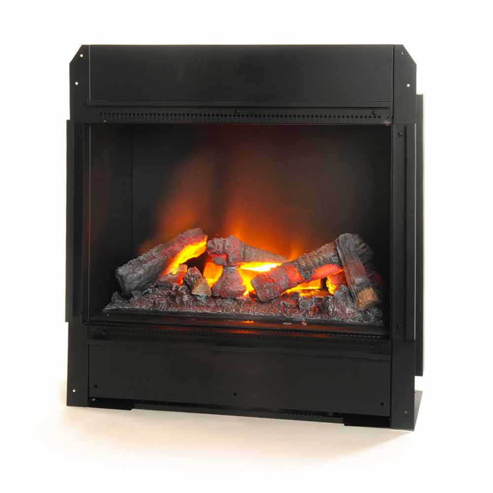 Lareira eléctrica a colocar no chão ou embutida, acabamento interior em preto ou tijolo.