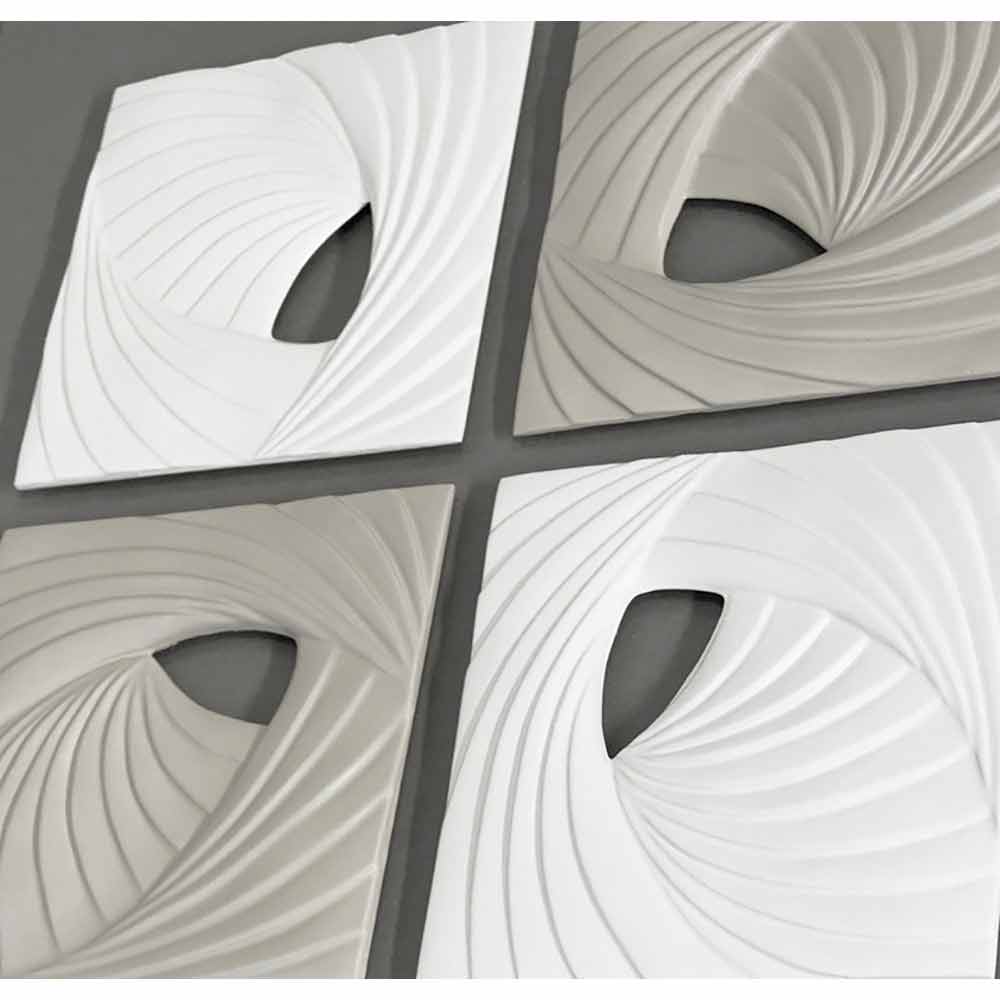 Baixo-relevo da decoração da parede do design moderno de pendentes em cerâmica branca e cinza sobre tela, feitas na Itália.