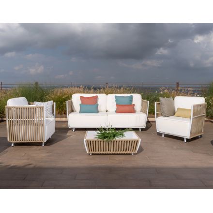 Lounge de jardim em tecelagem de alumínio e polirattan - Melina