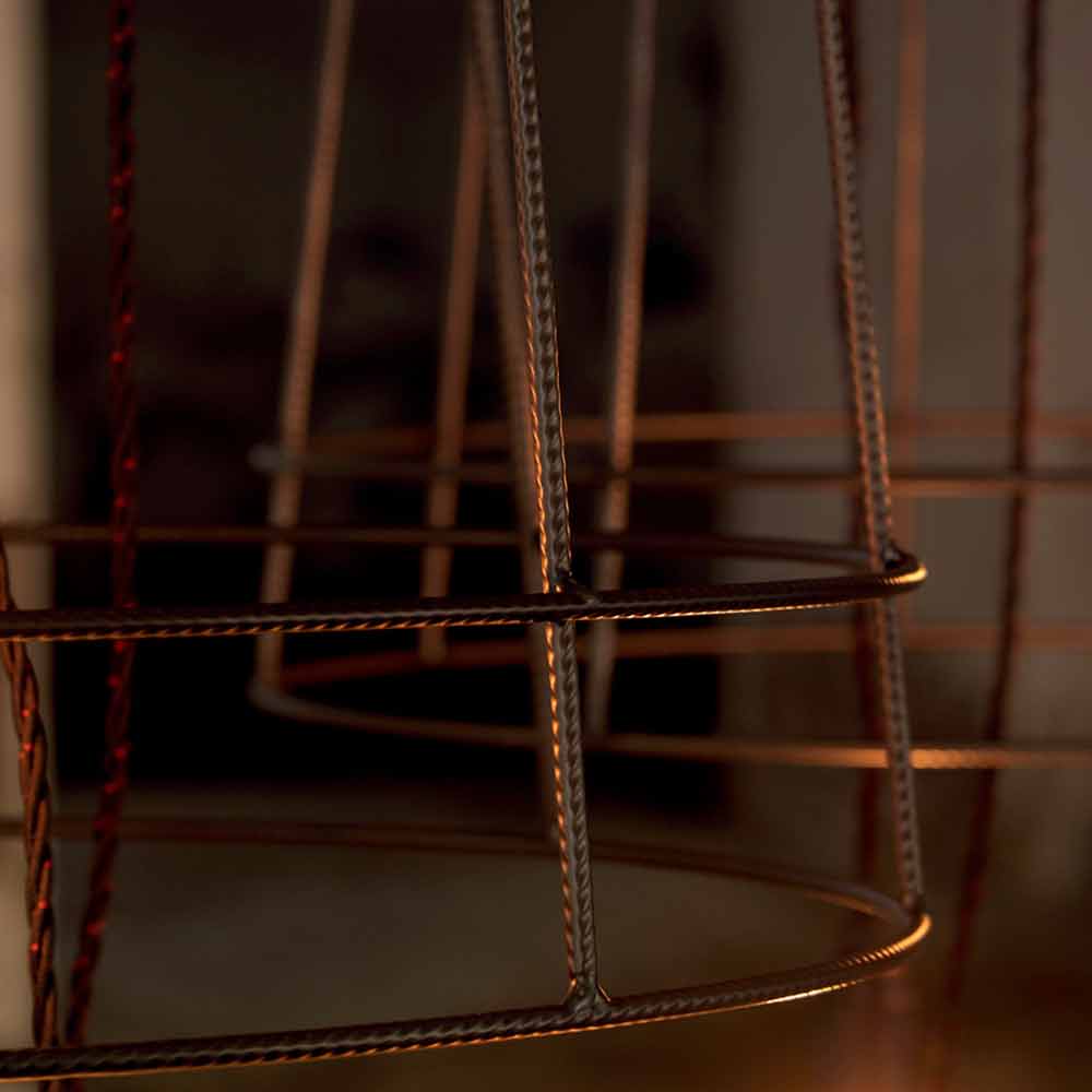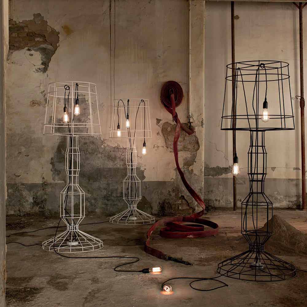 O candeeiro é feito de haste de metal nervurada em dois acabamentos para um design inteiramente italiano que, através da experimentação pouco convencional e da pesquisa contínua entre tradição e modernidade , é capaz de surpreender, ousar e emocionar, permitindo-lhe expressar as suas emoções através de uma decoração original e pessoal uso de luz.