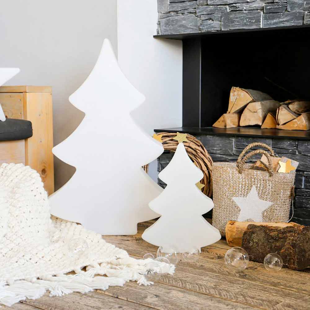Candeeiro de pé para interior ou exterior com um design moderno em forma de árvore de Natal em polietileno branco disponível com 3 tipos de ataque.