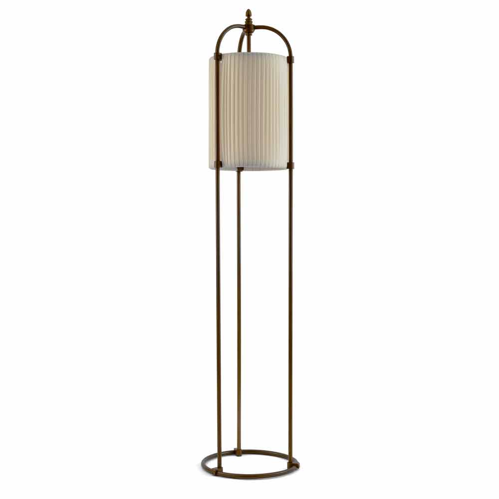 Luminária de pé tradicional em latão e tecido Hua Hika