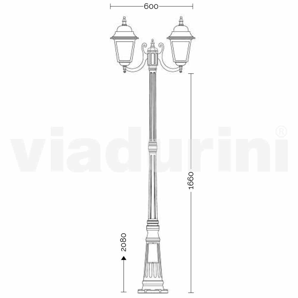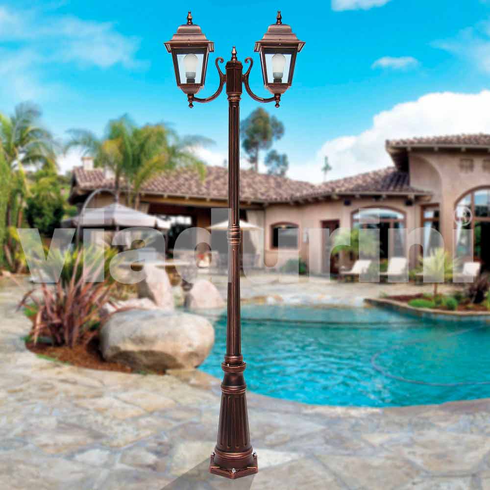 Candeeiro de exterior clássico de duas luzes fabricado na Itália, Aquilina