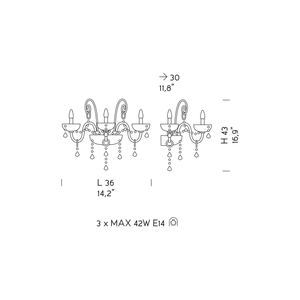Lâmpadas (não incluídas) : 3 x MAX 42W E14