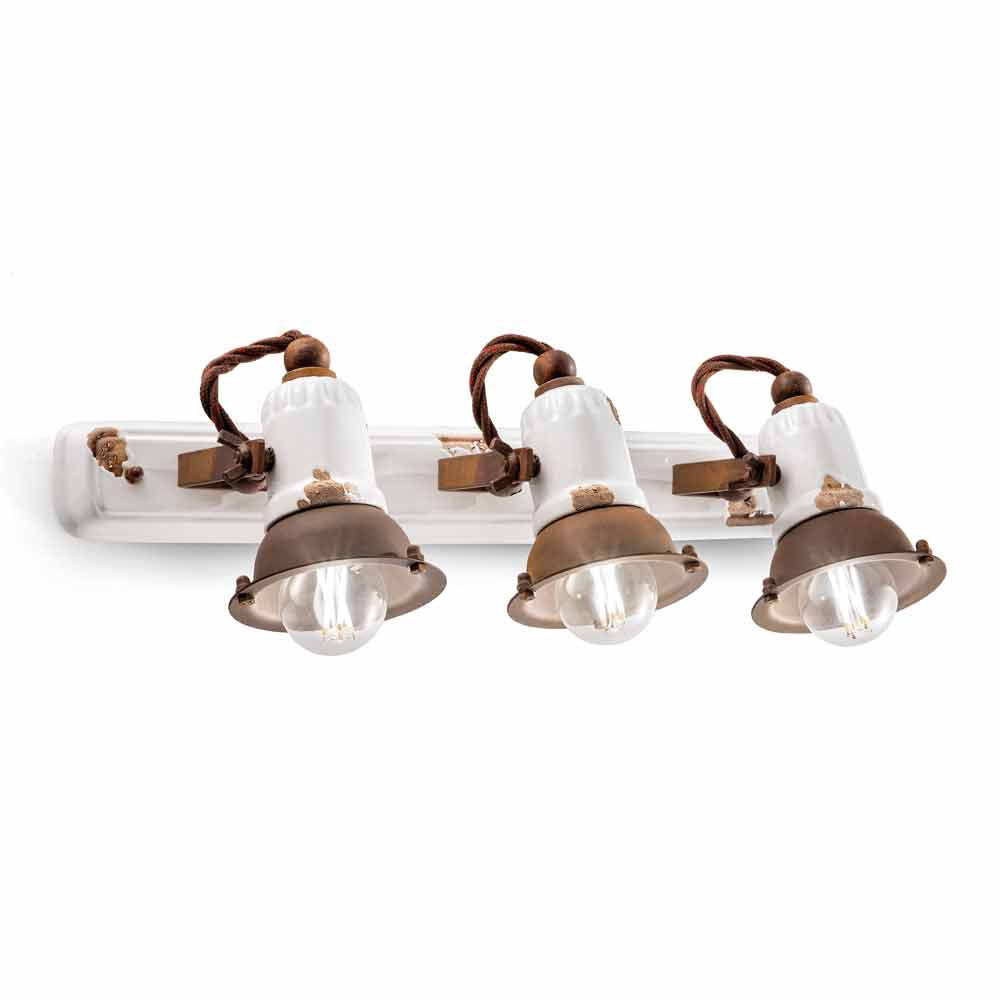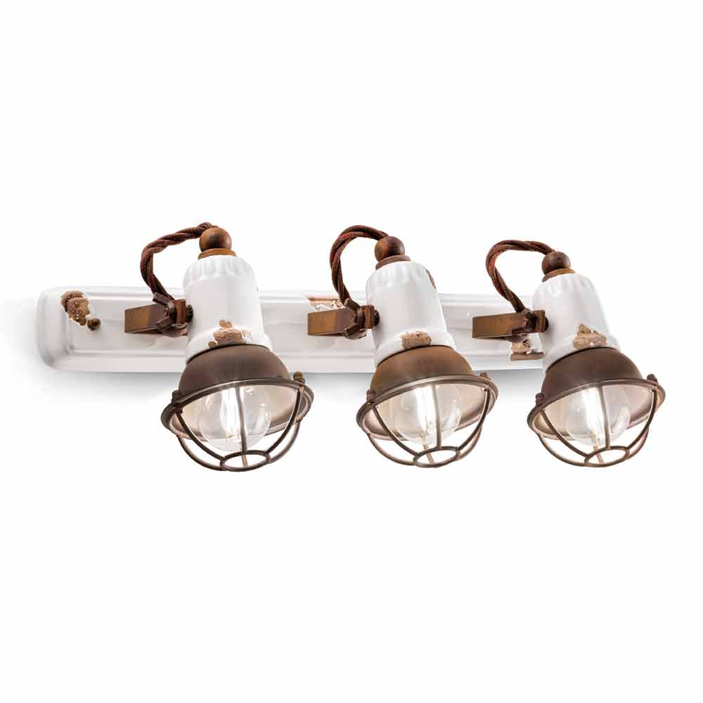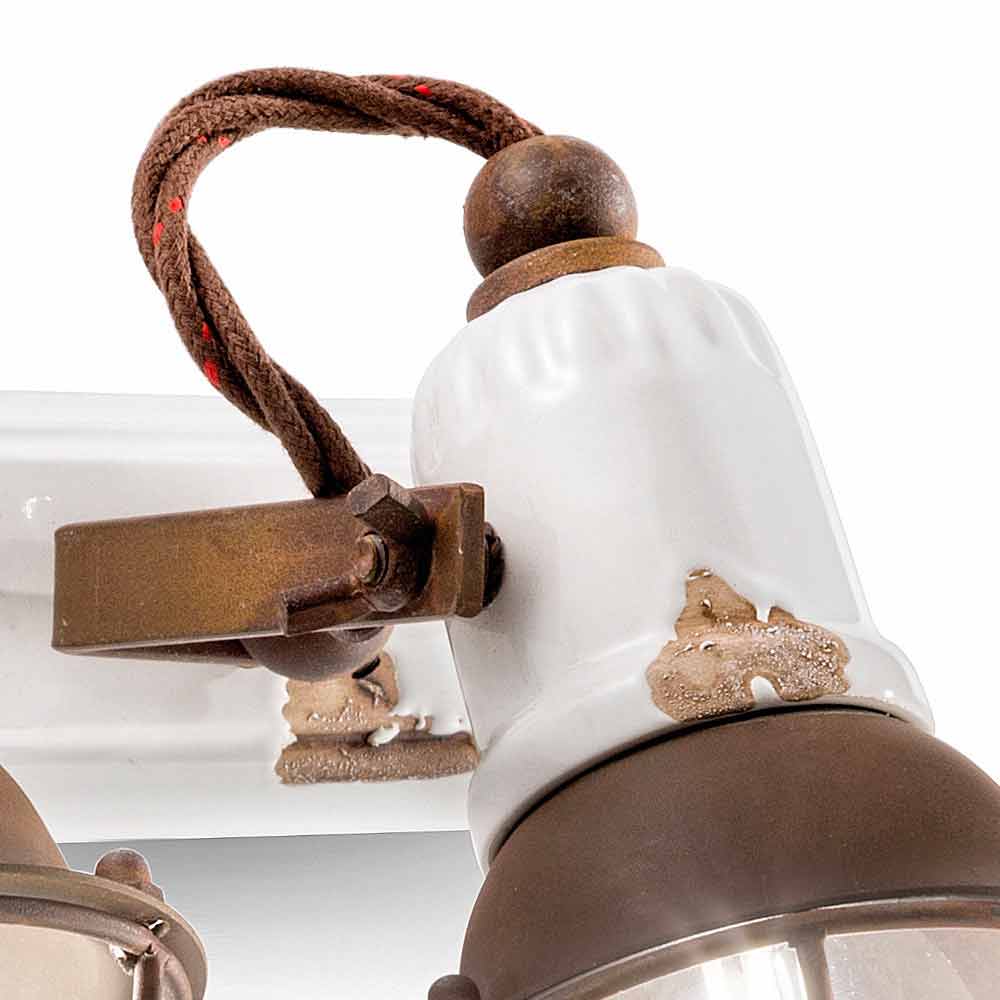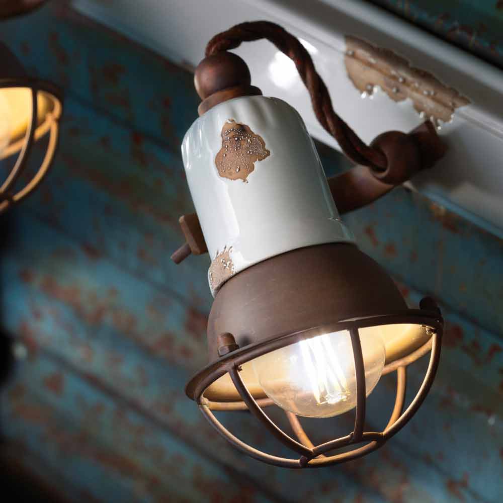 Luz direcional, cerâmica com acabamentos vintage em perfeita harmonia com o metal oxidado: um aplique único em seu estilo, com sabor antigo, perfeito para os ambientes mais refinados.