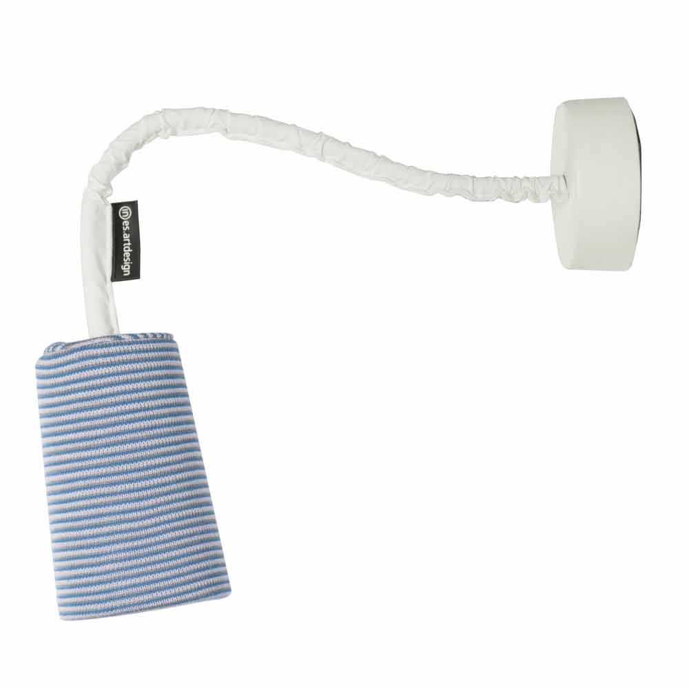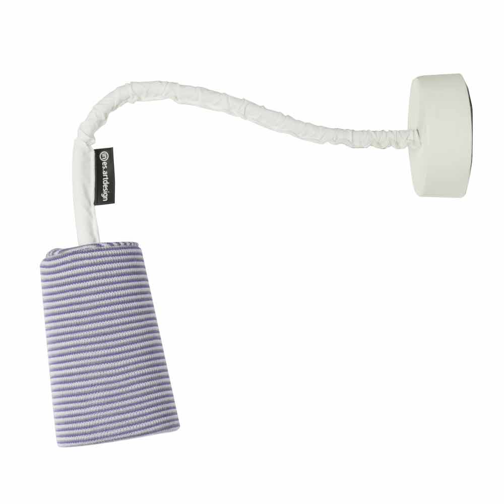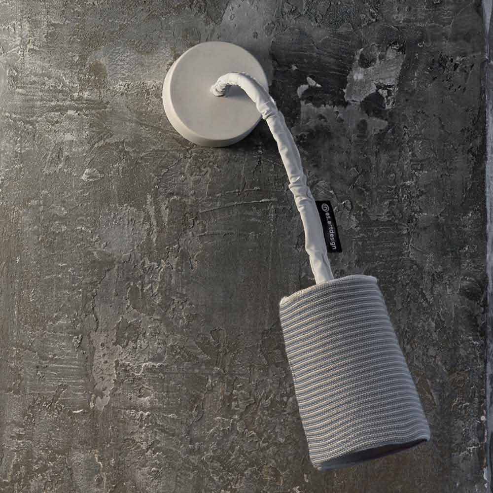Candeeiro de parede contemporâneo e moderno caracterizado por uma estrutura nebulítica (um material inovador feito de resina e fibra) coberto com um fio de lã às riscas.