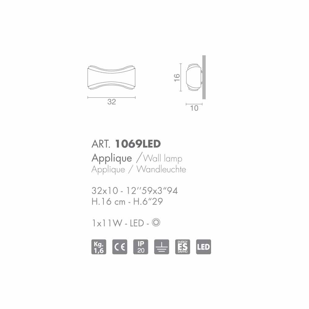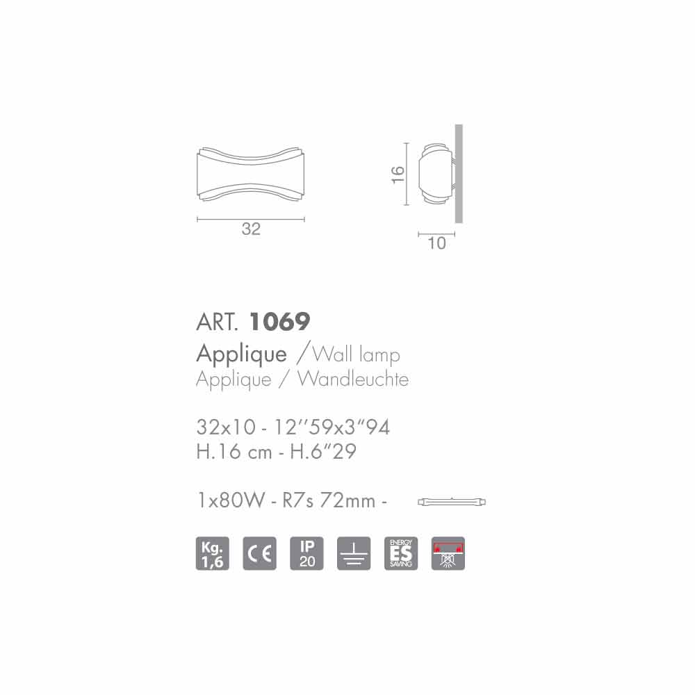 Lâmpada de parede Selene Ionica, feita na Itália, 32x10xH16 cm, design moderno.