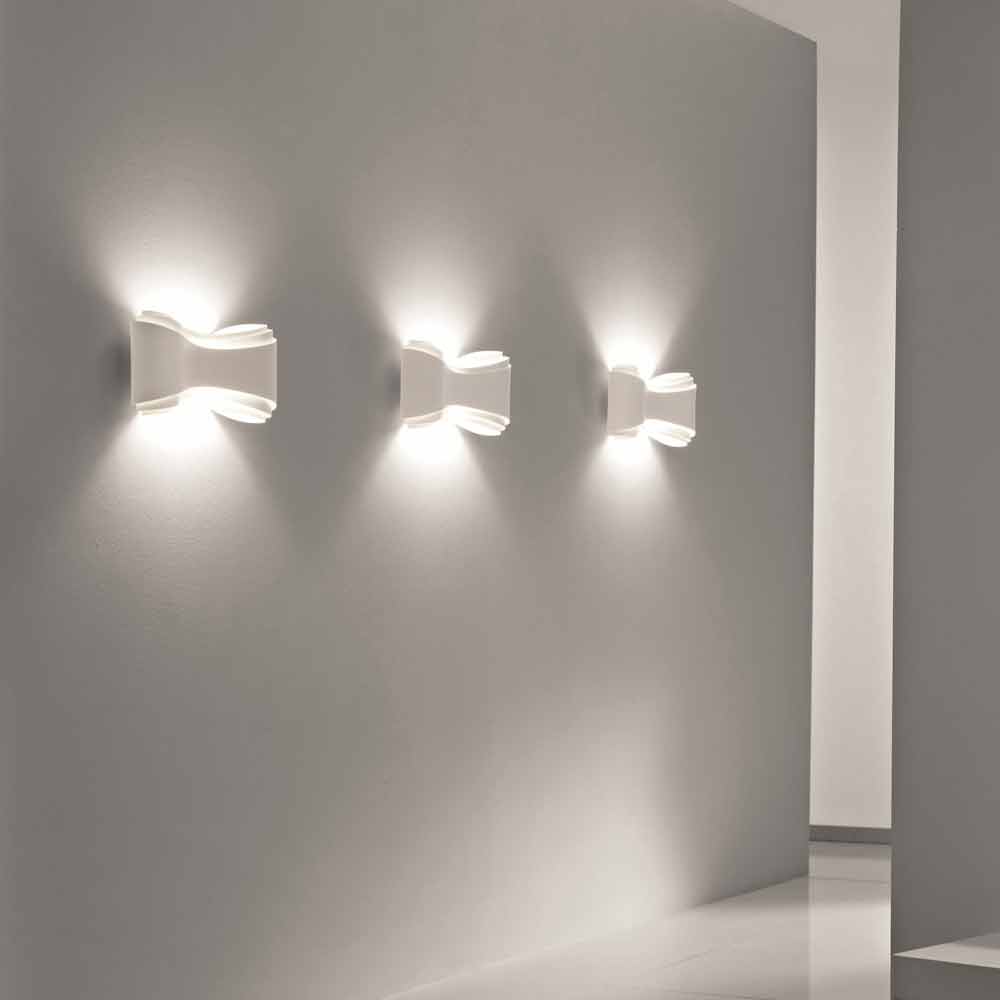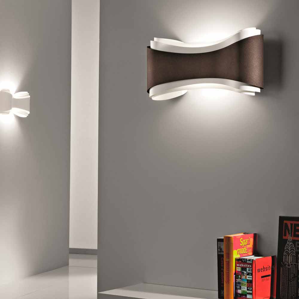 Lâmpada de parede formada por bandas de aço habilmente dobradas à mão para criar uma forma fluida e composta. A frente está disponível em várias cores e diferentes acabamentos. Por favor, note que todas as lâmpadas não estão incluídas.
