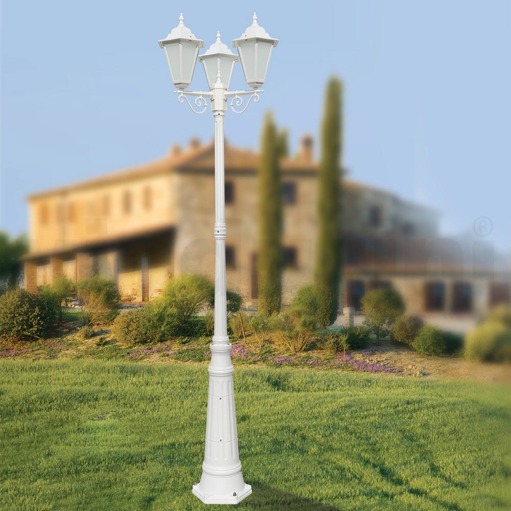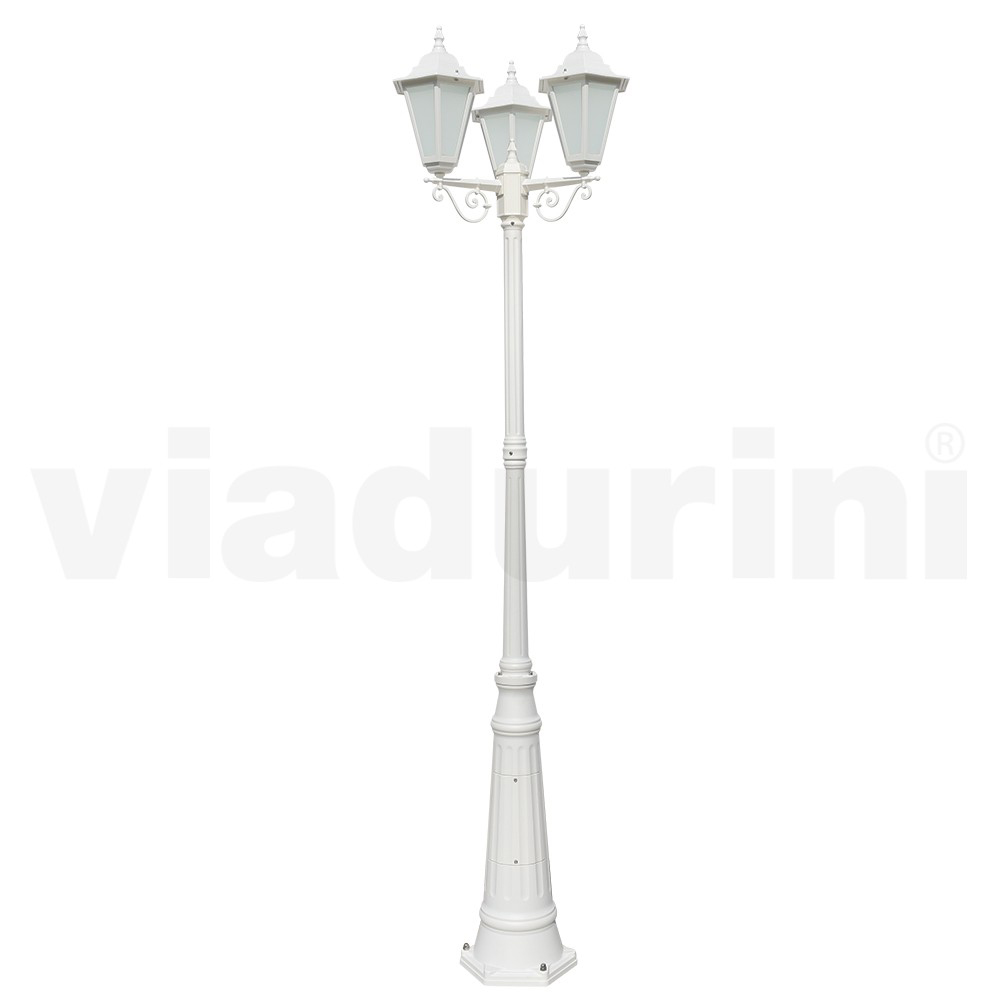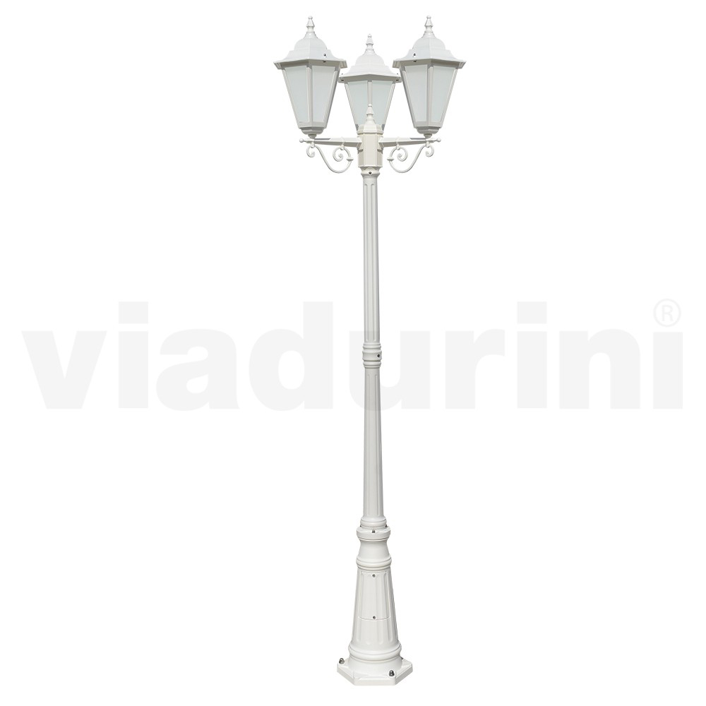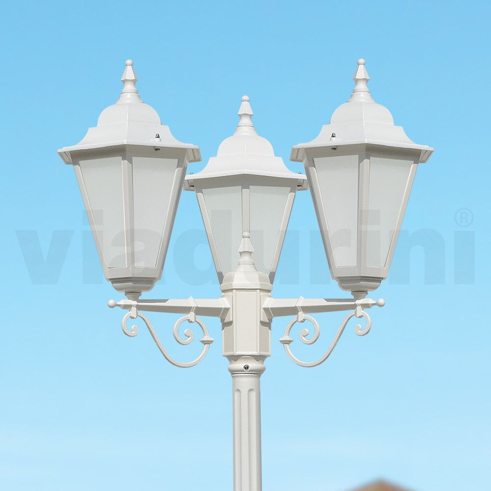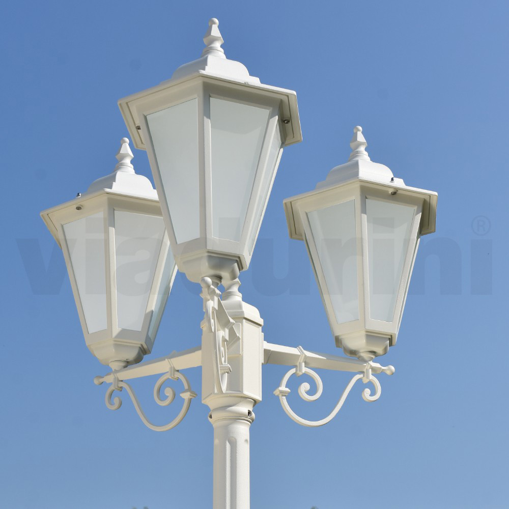 Candeeiro de rua de alumínio com 3 lâmpadas e difusor de vidro Fabricado na Itália, estilo vintage.