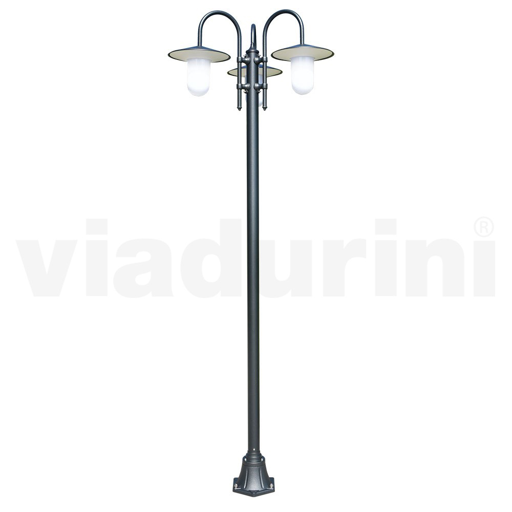 Candeeiro de rua vintage com 3 luzes em alumínio e policarbonato Fabricado na Itália.