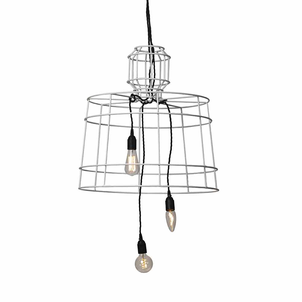 Esta lâmpada pendente original e singular apresenta um design feito de metal com ferros de jardinagem moldados e soldados. A peculiaridade consiste em seu esqueleto essencial que dá vida a um estilo industrial e minimalista pronto para se tornar uma importante coluna no ambiente de destino.