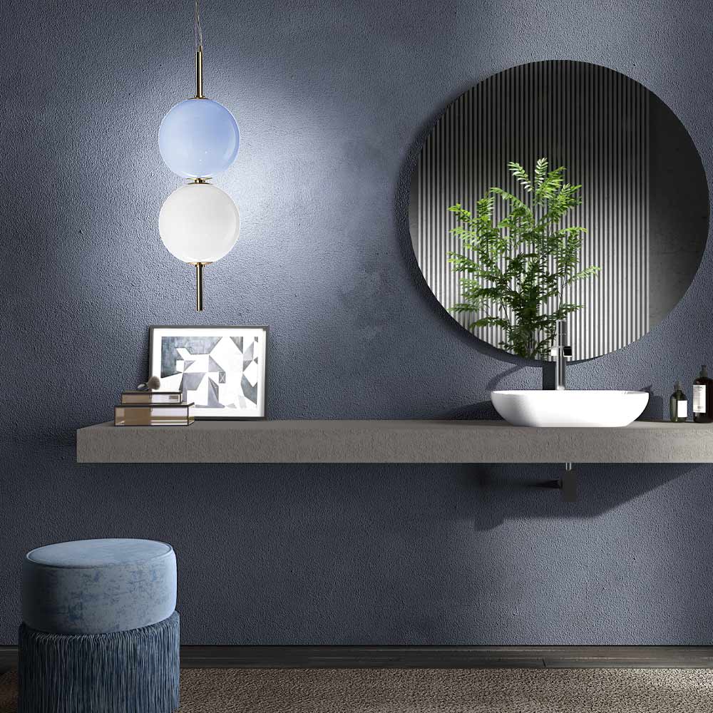 - esferas de dois tons (vidro revestido branco, vidro revestido azul);
