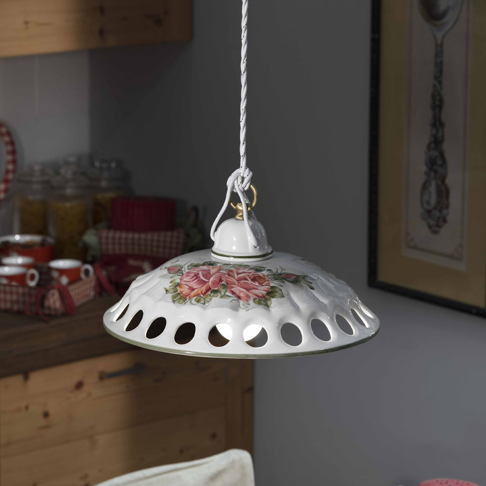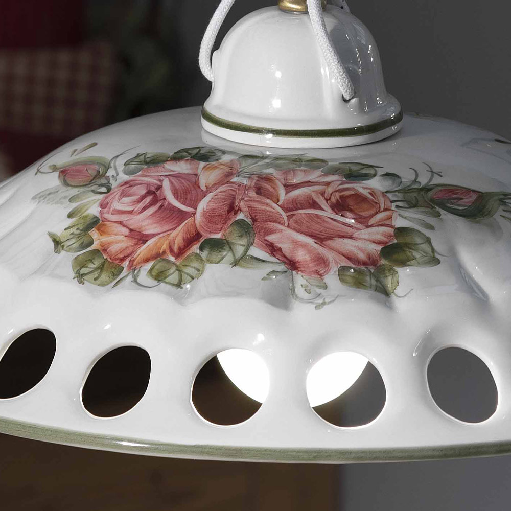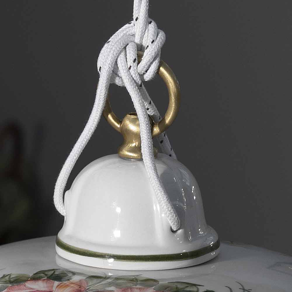 Luminária suspensa em metal e cerâmica artesanal com fitas, fabricada na Itália pela Ferroluce.