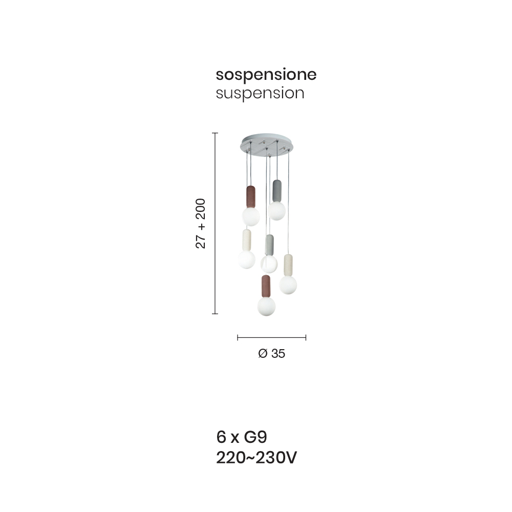 - 6 luzes - diâmetro 35 x H 227 cm (6x G9 220-230 V);