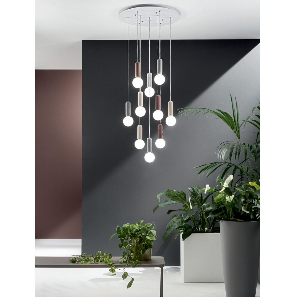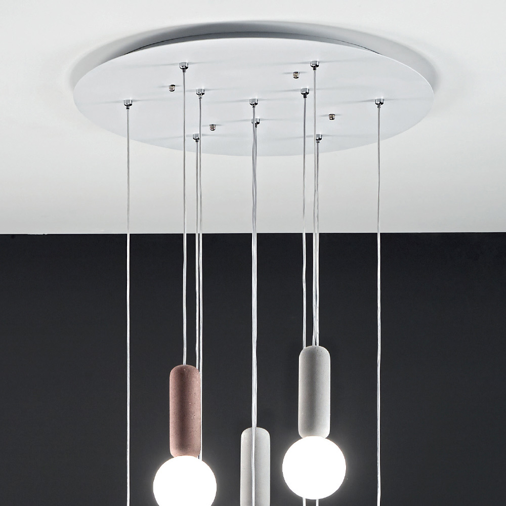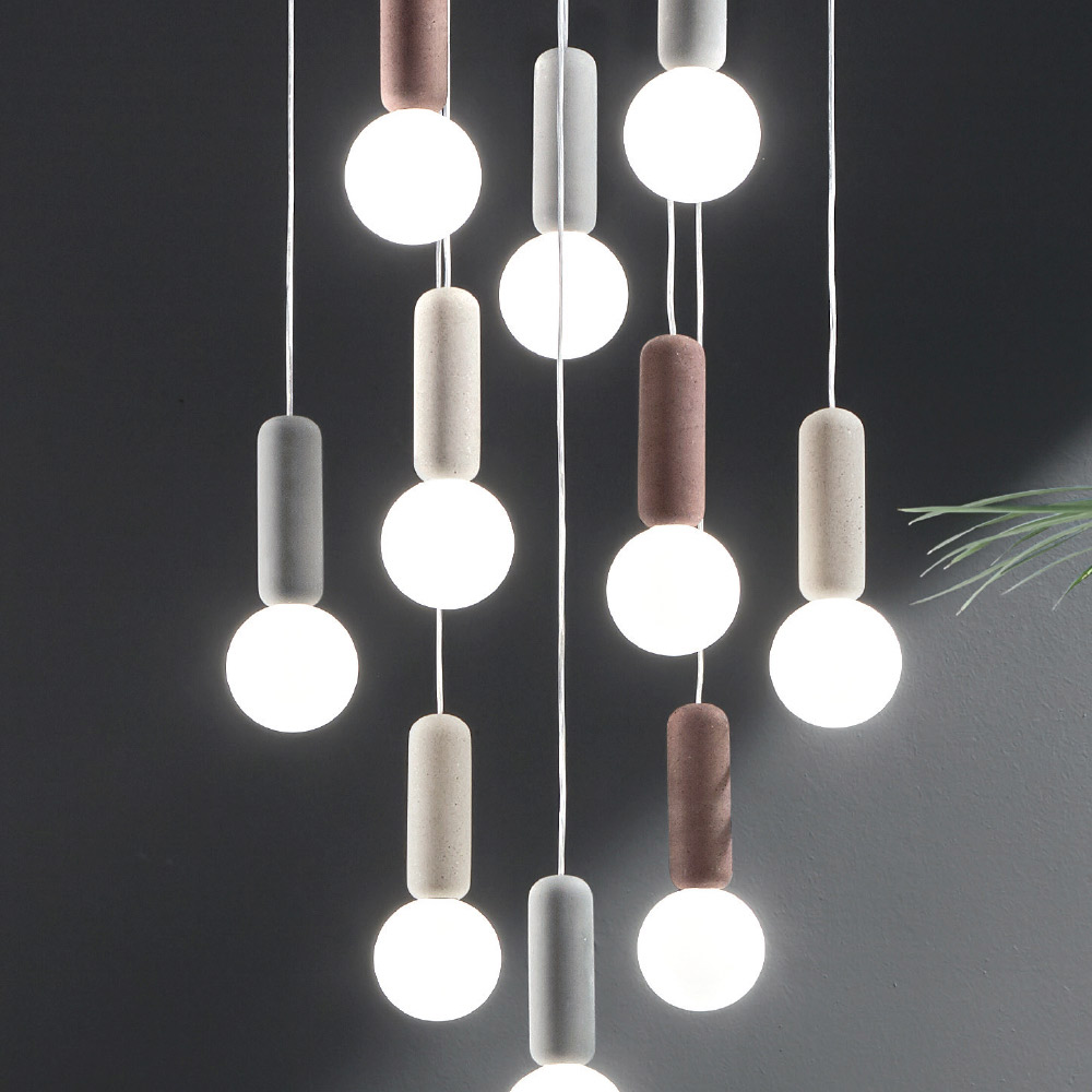Candeeiro de suspensão em cimento e vidro fundido acetinado.