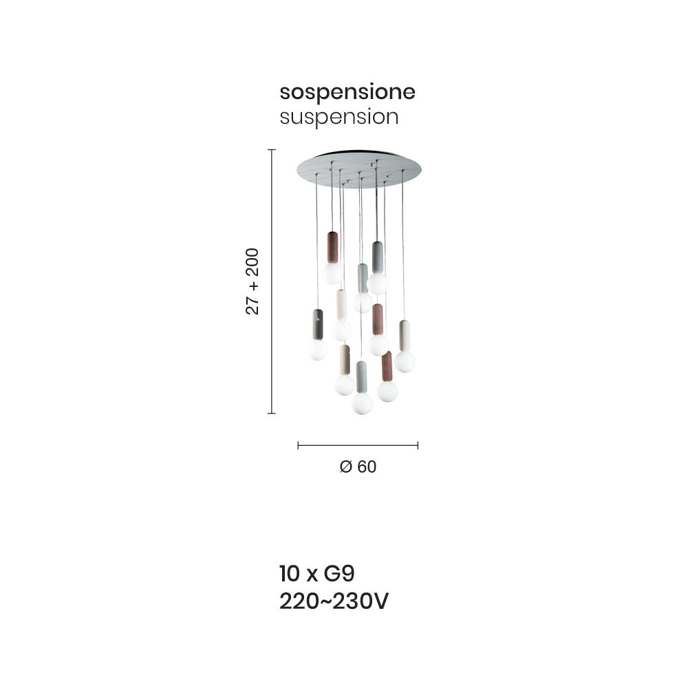 - 10 luzes - diâmetro 60 x H 27 cm (10x G9 220-230 V).