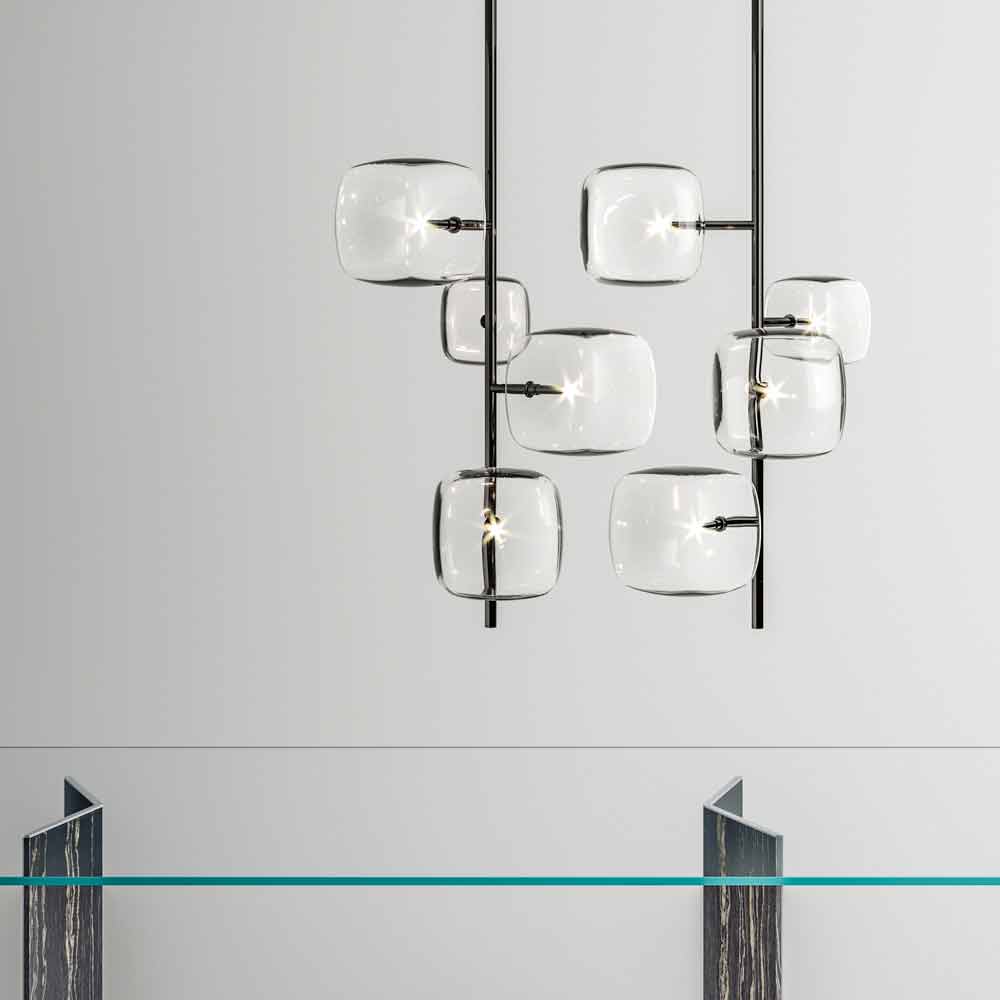 vidro pirex transparente soprado consoante a dimensão escolhida. Ideal também para múltiplas instalações em diferentes alturas, conferindo