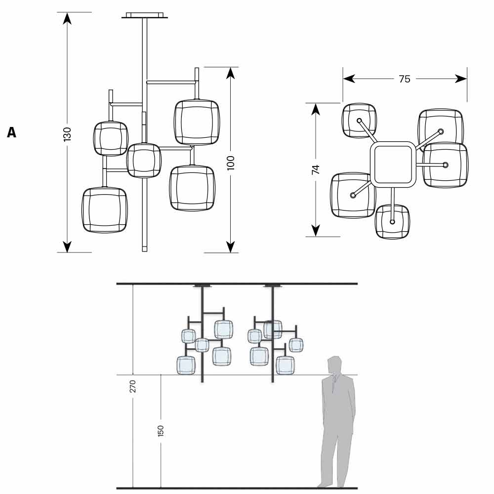 - L 75 x P 74 x H 130 cm (5 cubos);