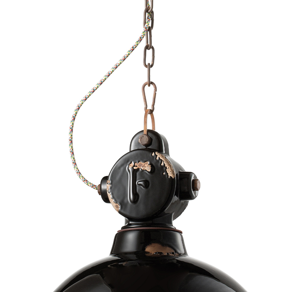 Luminária suspensa industrial em cerâmica e ferro de diversos acabamentos, fabricada na Itália artesanalmente pela Ferroluce.