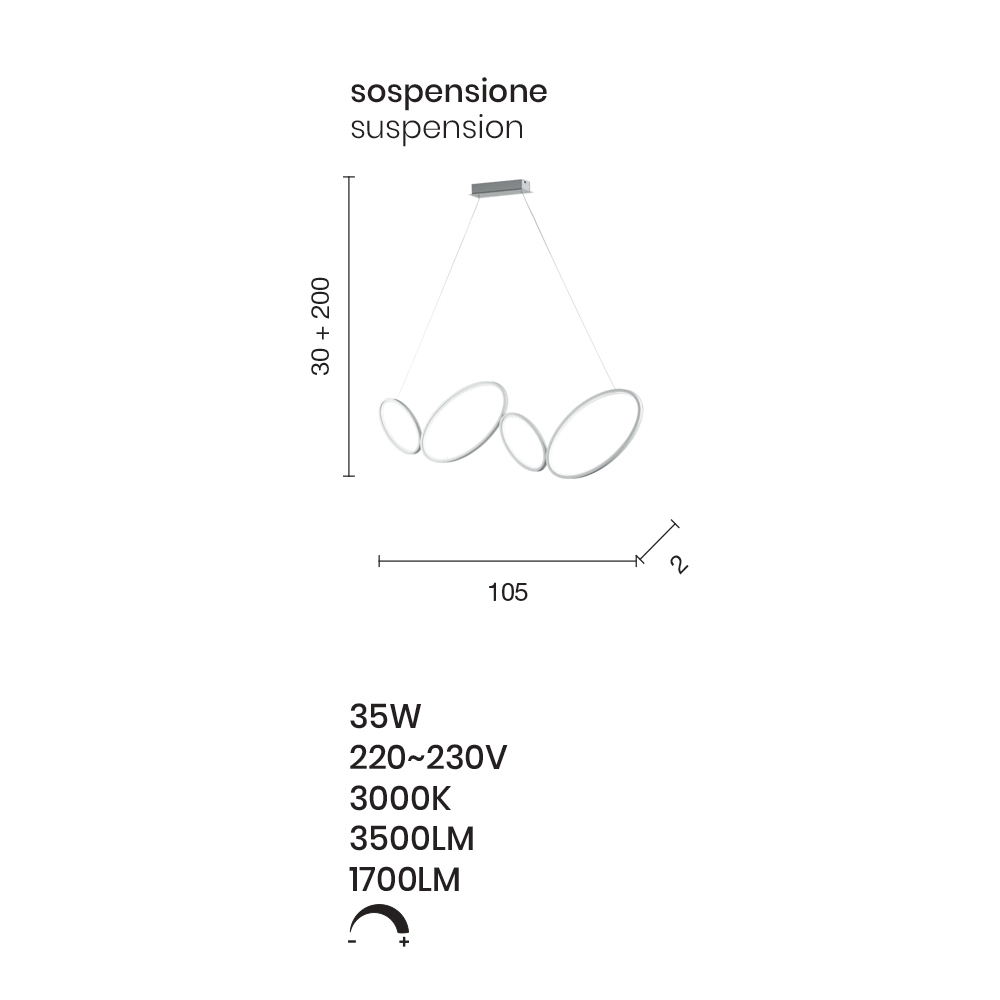 Candeeiro de suspensão em metal com difusor em acrílico e silicone.