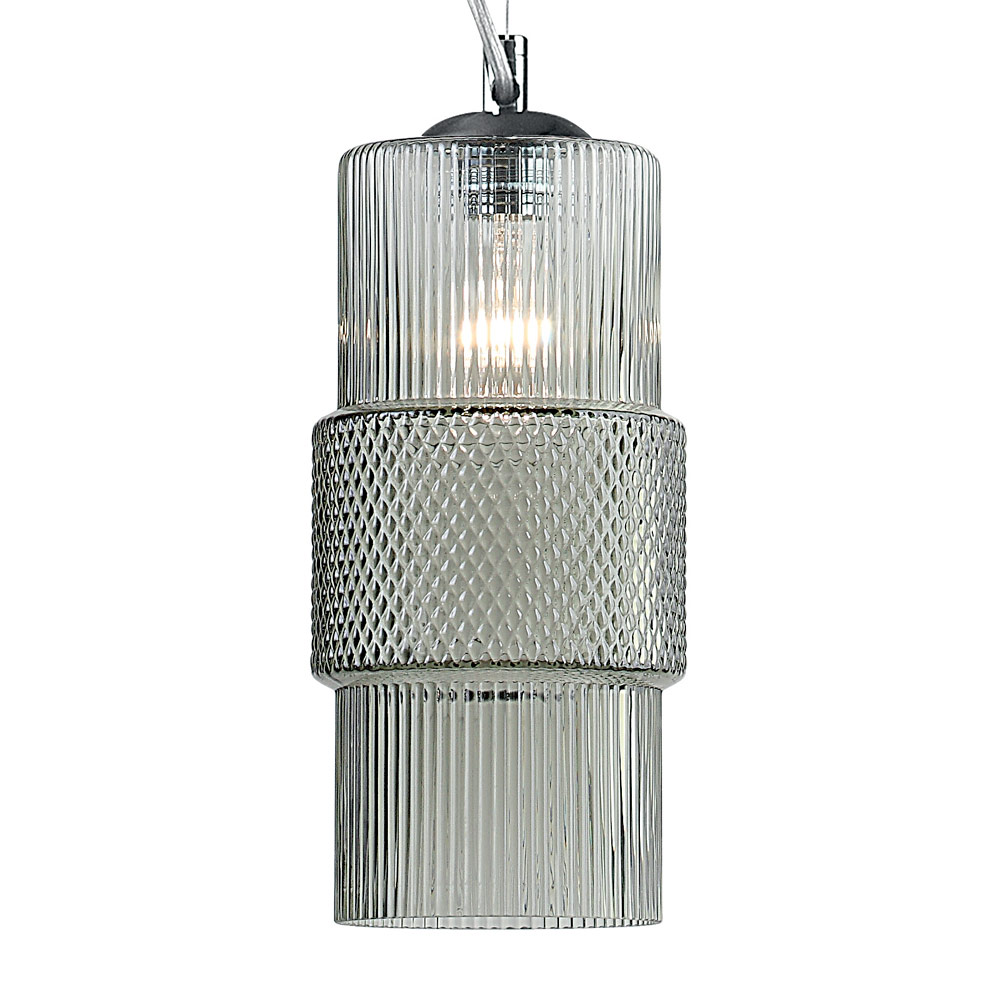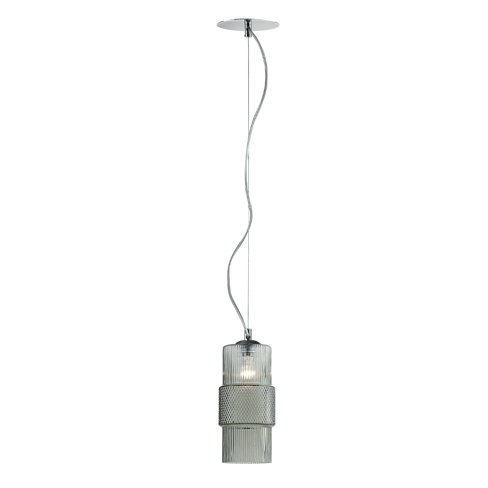 Candeeiro de suspensão artesanal em vidro veneziano fundido e metal cromado.