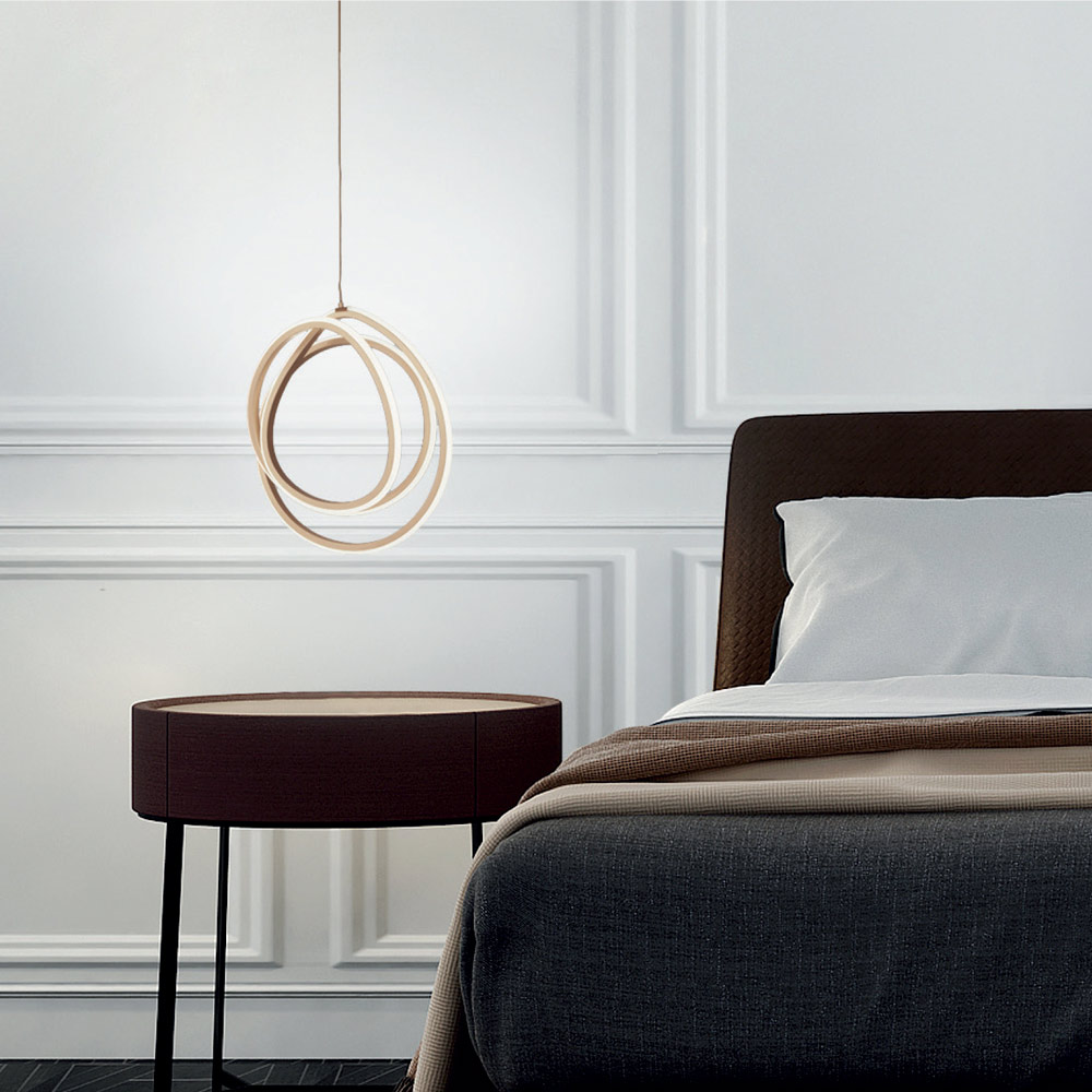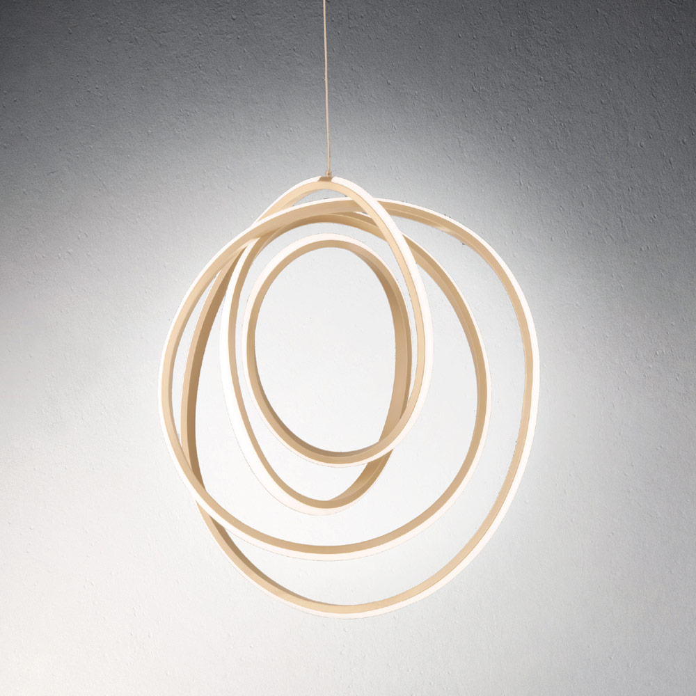 Luminária pendente LED em metal dourado de design elegante e luxuoso.