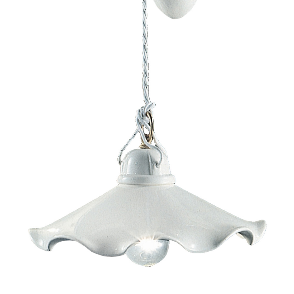 Lâmpada de suspensão vintage em ferro e cerâmica brilhante corrugada fabricada na Itália pela Ferroluce.
