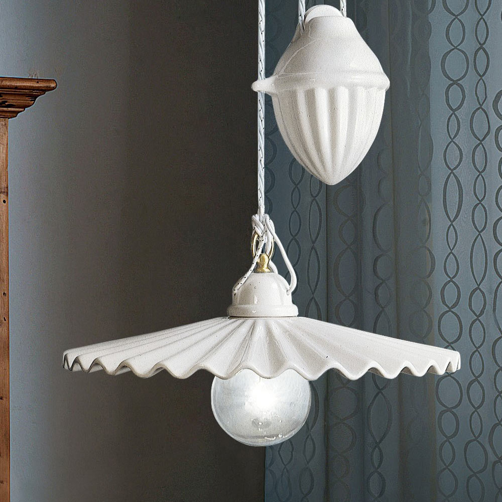 Lâmpada para cima e para baixo em design plissado de cerâmica brilhante fabricado na Itália pela Ferroluce.