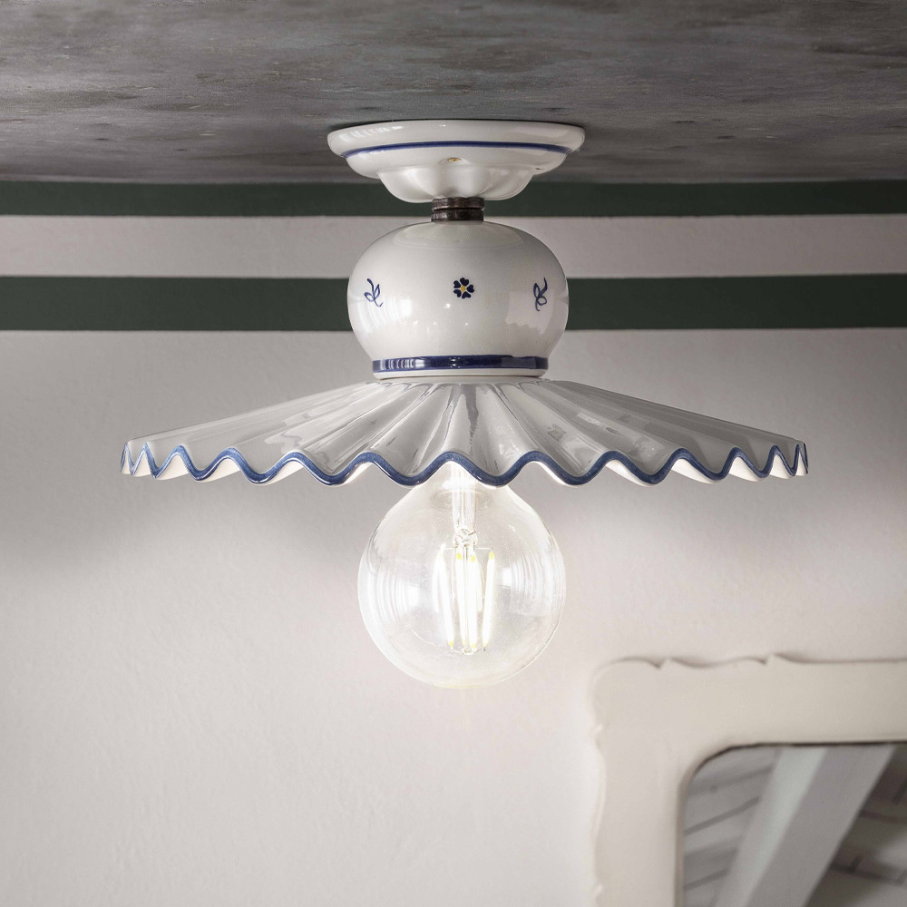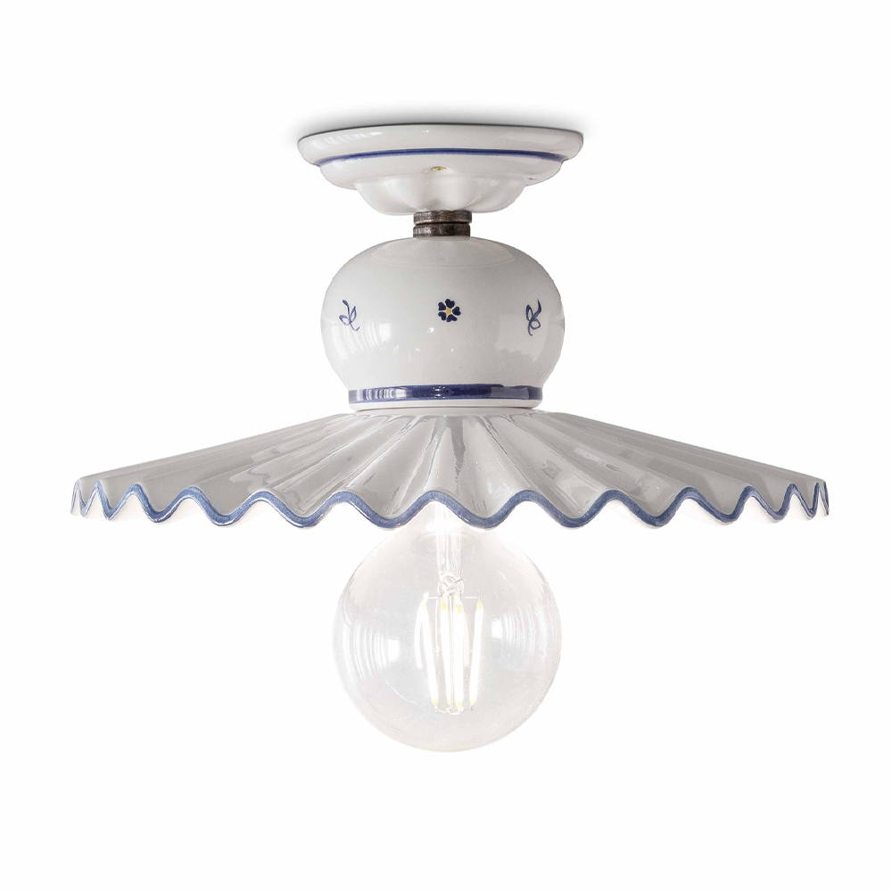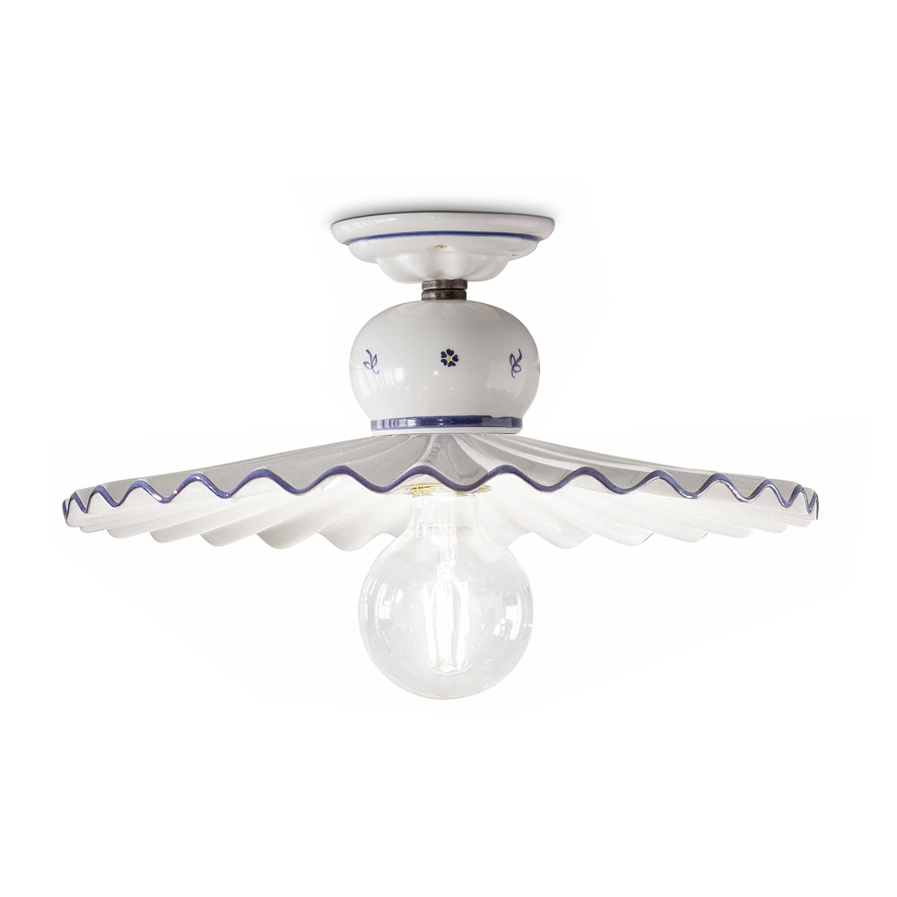 Luminária de teto artesanal em metal e cerâmica pintada à mão, 2 tamanhos fabricados na Itália pela Ferroluce.