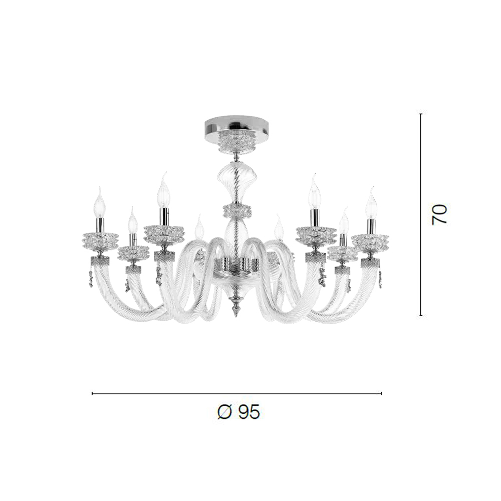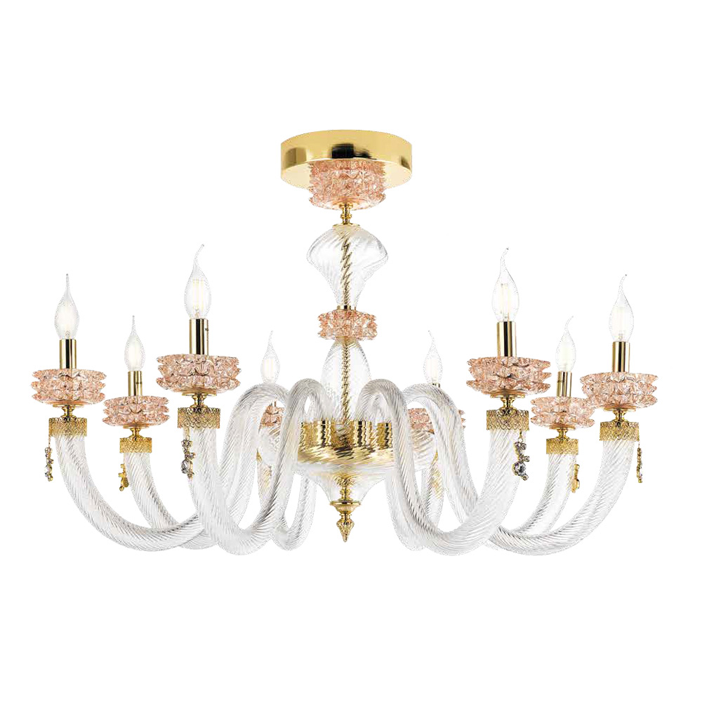 Lâmpada de teto de 8 luzes em vidro e metal artesanal, design de luxo italiano.