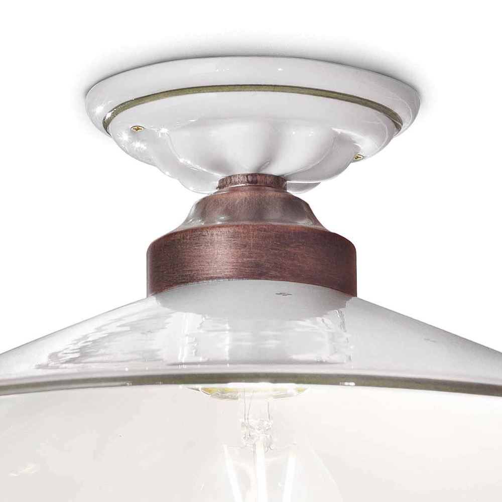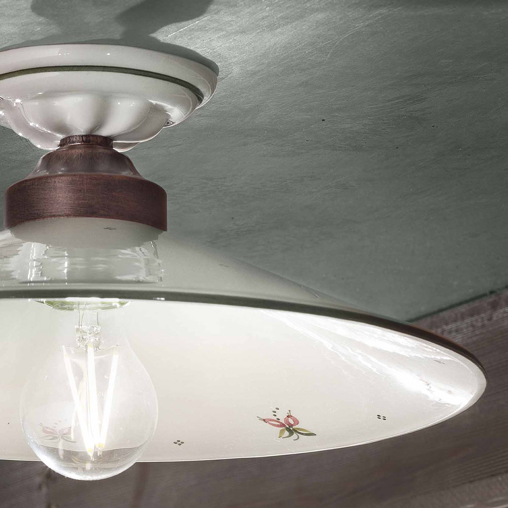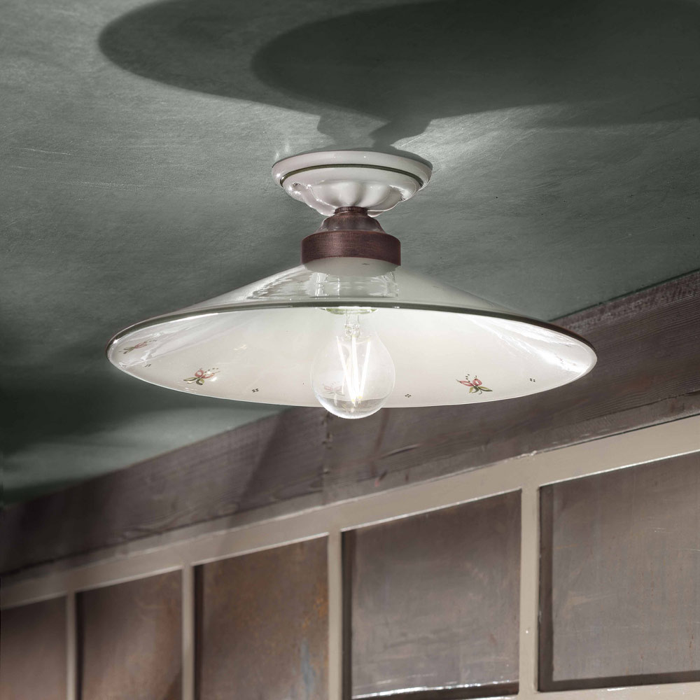 Candeeiro de teto vintage em ferro e cerâmica pintada à mão, 3 tamanhos fabricado na Itália pela Ferroluce.