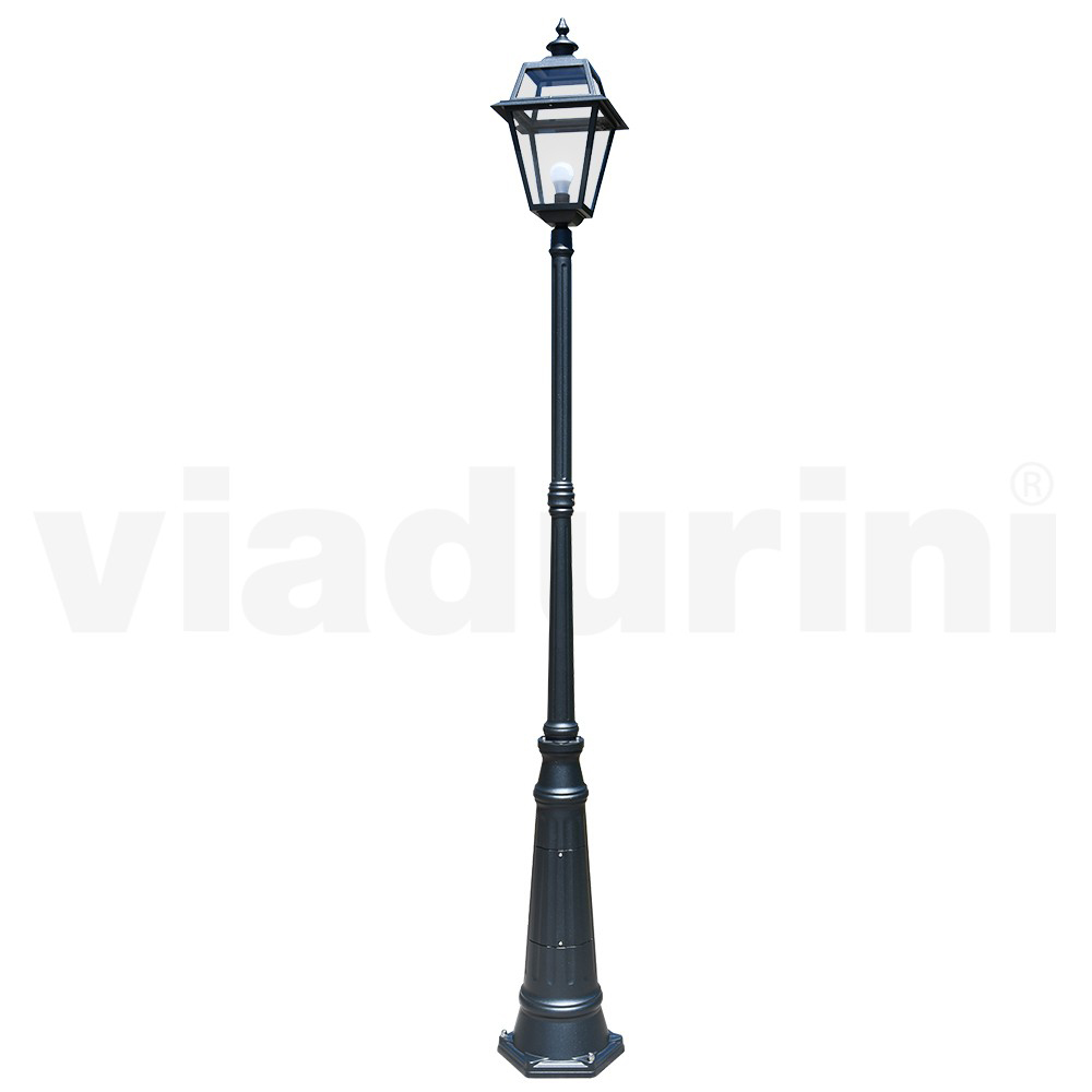 Candeeiro de jardim estilo vintage em alumínio e vidro Fabricado na Itália.