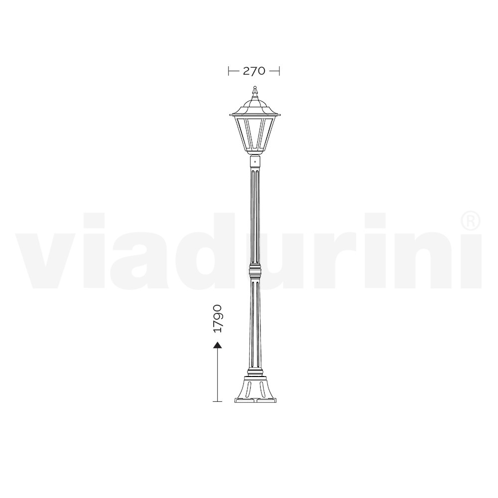 Poste de luz estilo vintage em alumínio com difusor de vidro Fabricado na Itália.