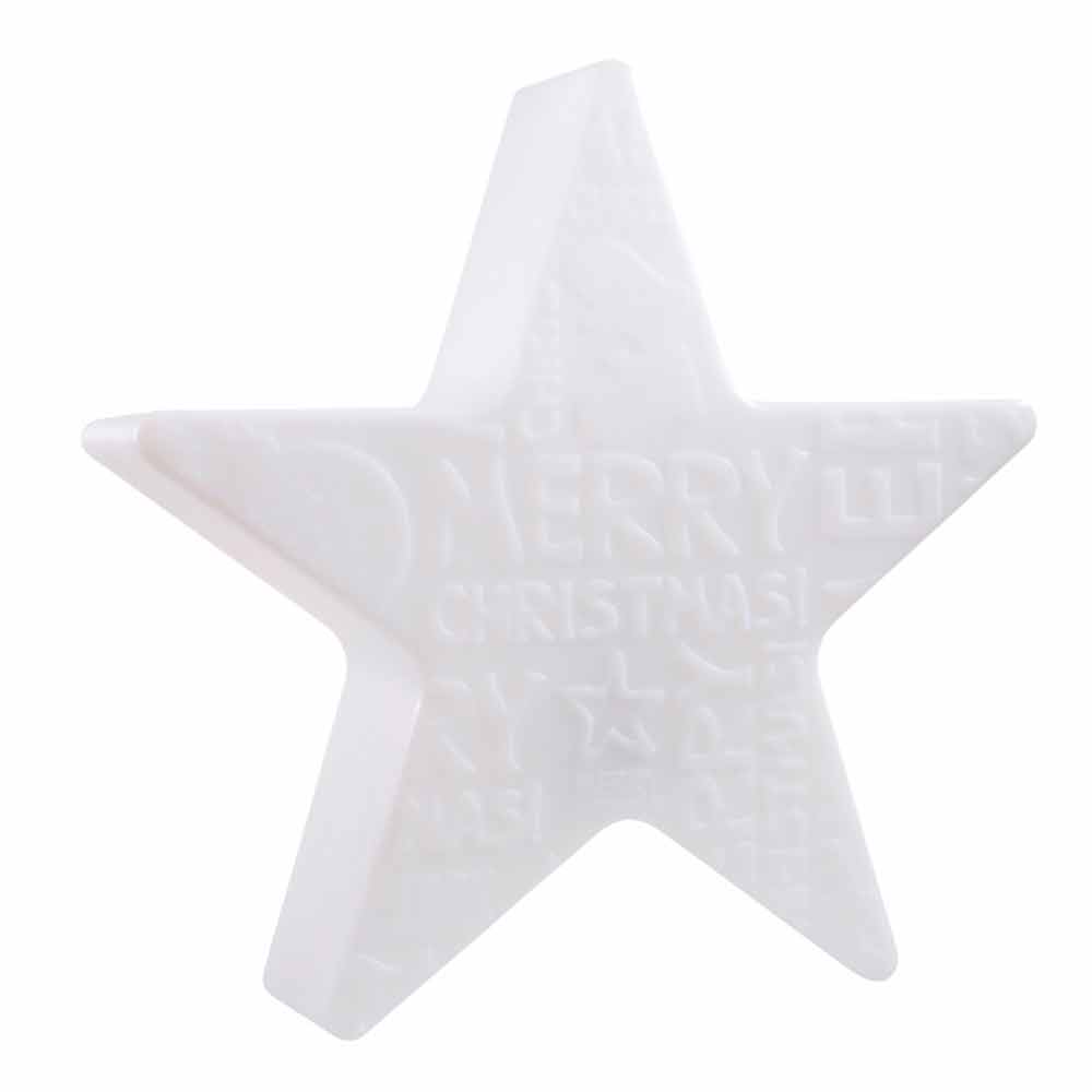 Este candeeiro de mesa para interior ou exterior é caracterizado pelo seu design atraente em forma de estrela com letras com temática de Natal em relevo na frente, enquanto o lado traseiro permanece liso. Um ponto de luz decorativo que delicia a alma e o coração e cria um ambiente cintilante e moderno, ideal para o período de Natal .