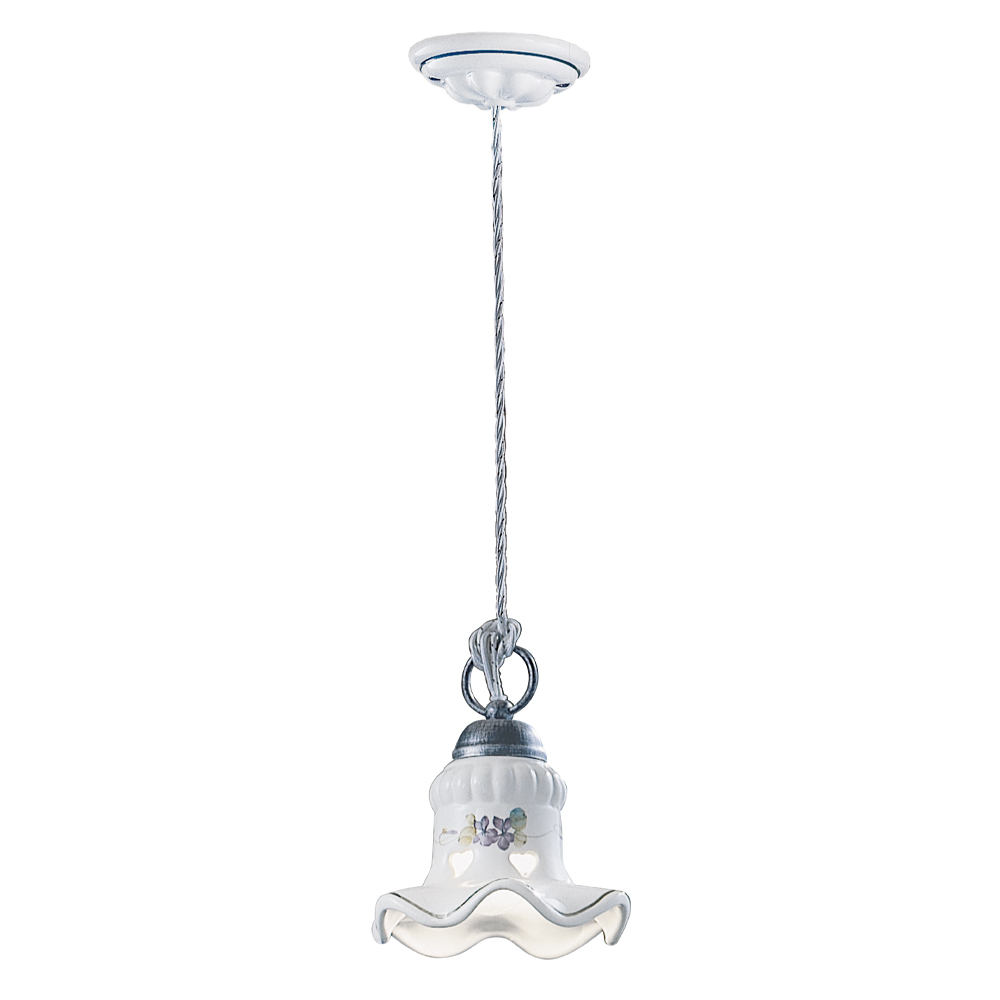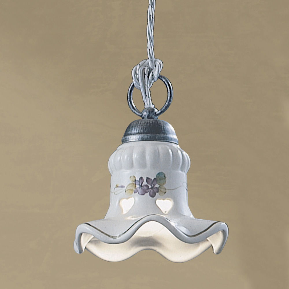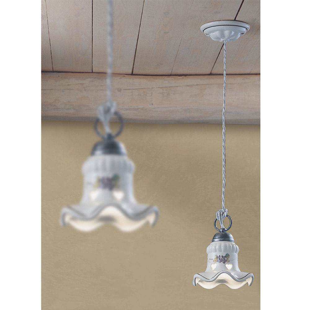 Luminária suspensa de ferro e cerâmica decorada à mão, fabricada na Itália pela Ferroluce.