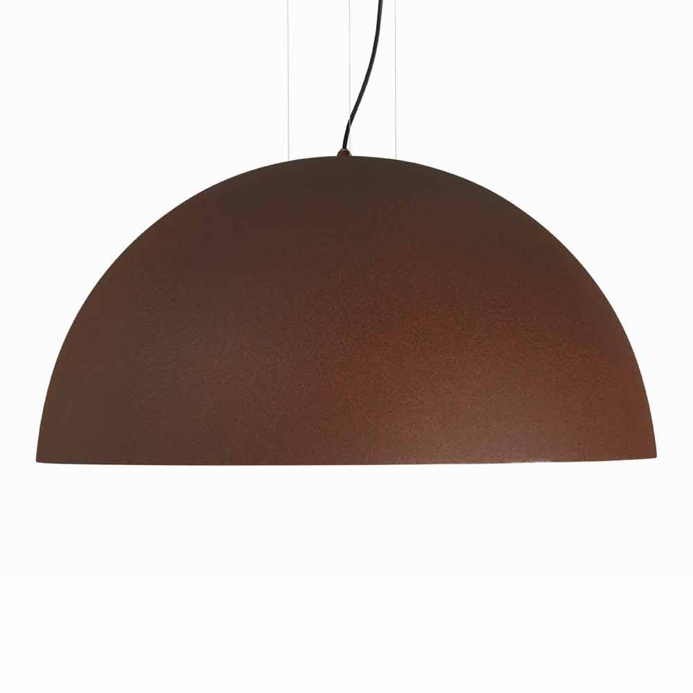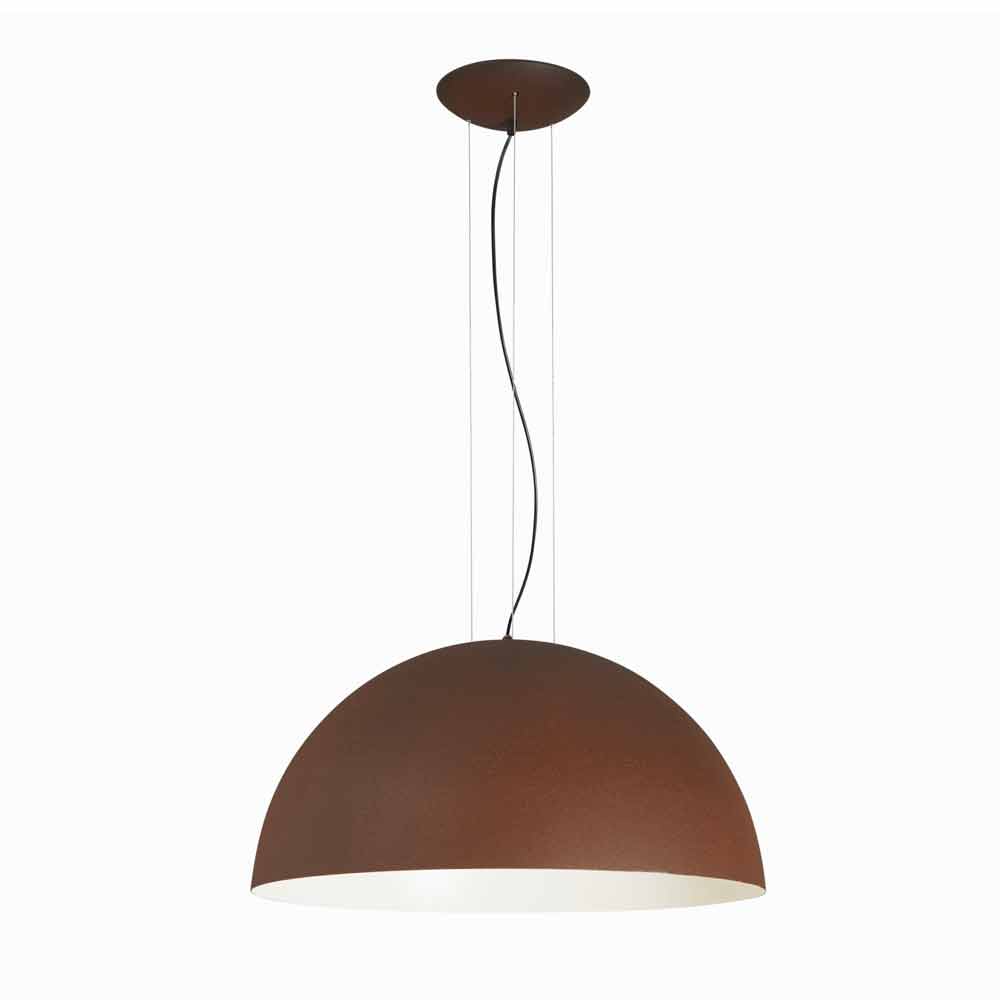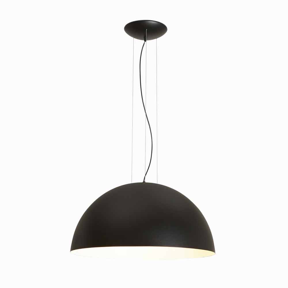 Candeeiro suspenso de duas cores em aço com revestimento de pó e decorado à mão. A luz se espalha de forma homogênea graças à sua forma e ao revestimento interior pintado de branco.