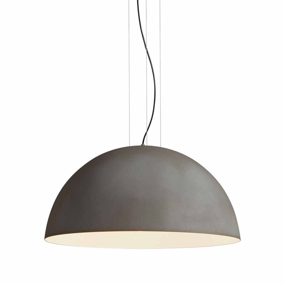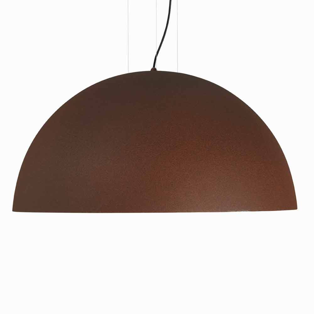 Candeeiro suspenso de duas cores em aço com revestimento de pó e decorado à mão. A luz se espalha de forma homogênea graças à sua forma e ao revestimento interior pintado de branco.