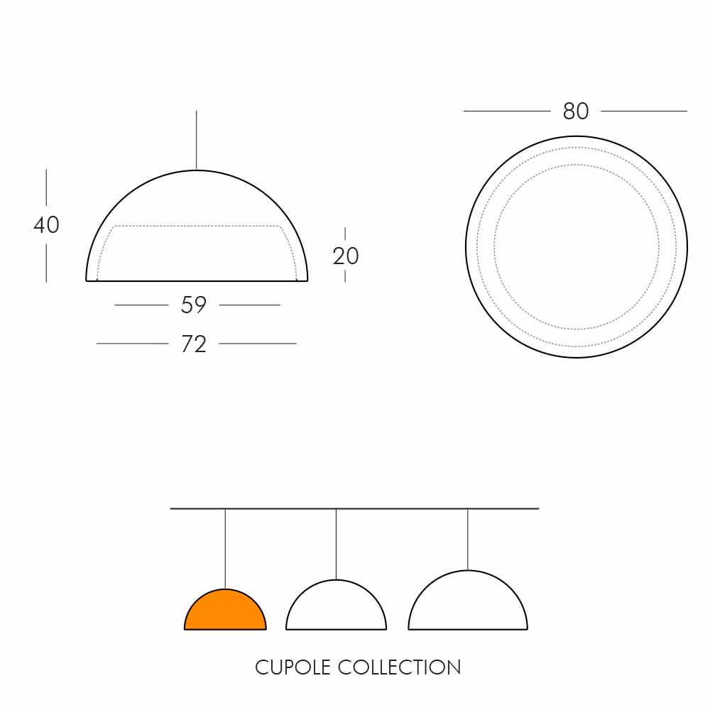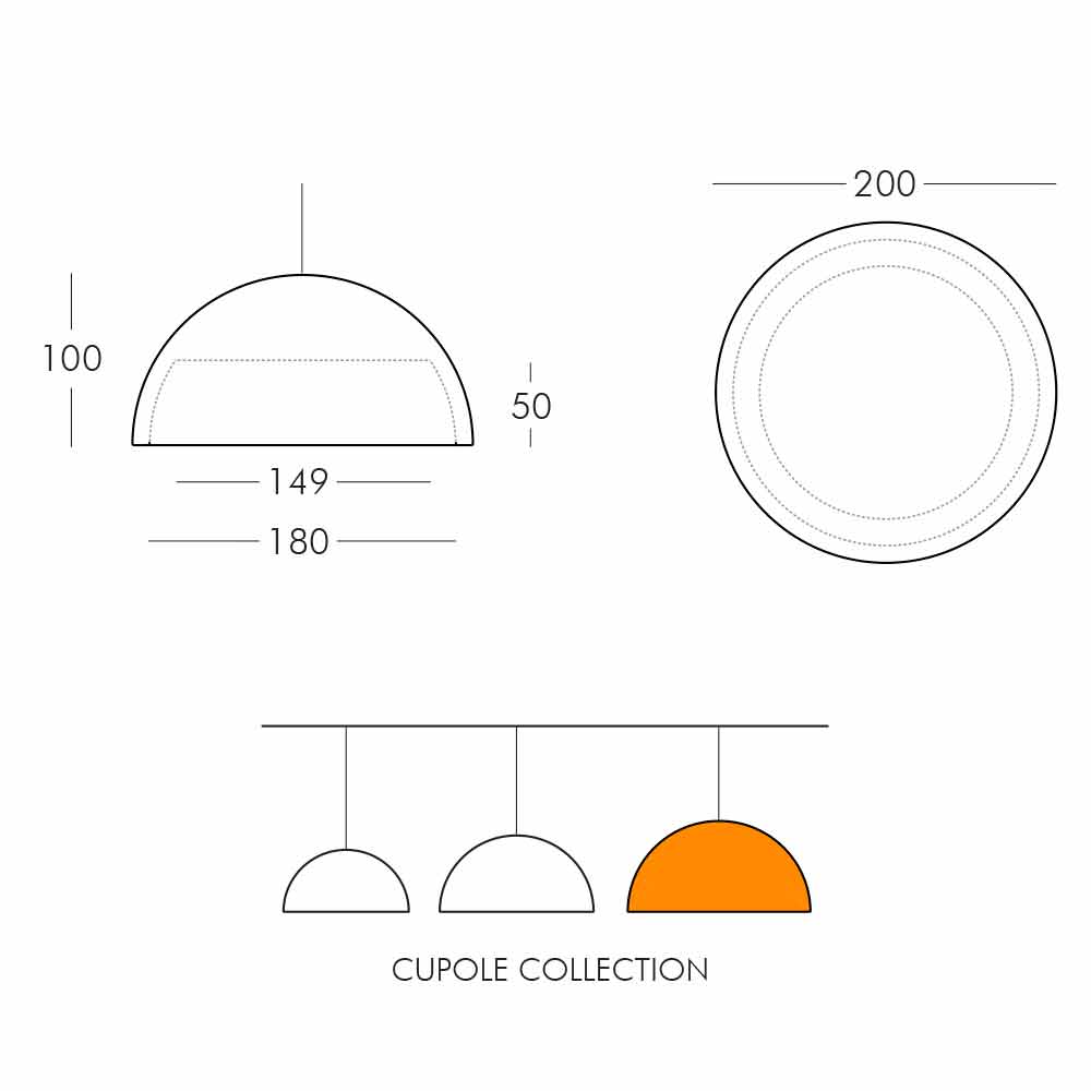 Cupole é uma lâmpada de suspensão de meia esfera perfeita para qualquer ambiente interno. Peça de mobiliário ideal para dar originalidade e carácter aos ambientes mais simples e anónimos.