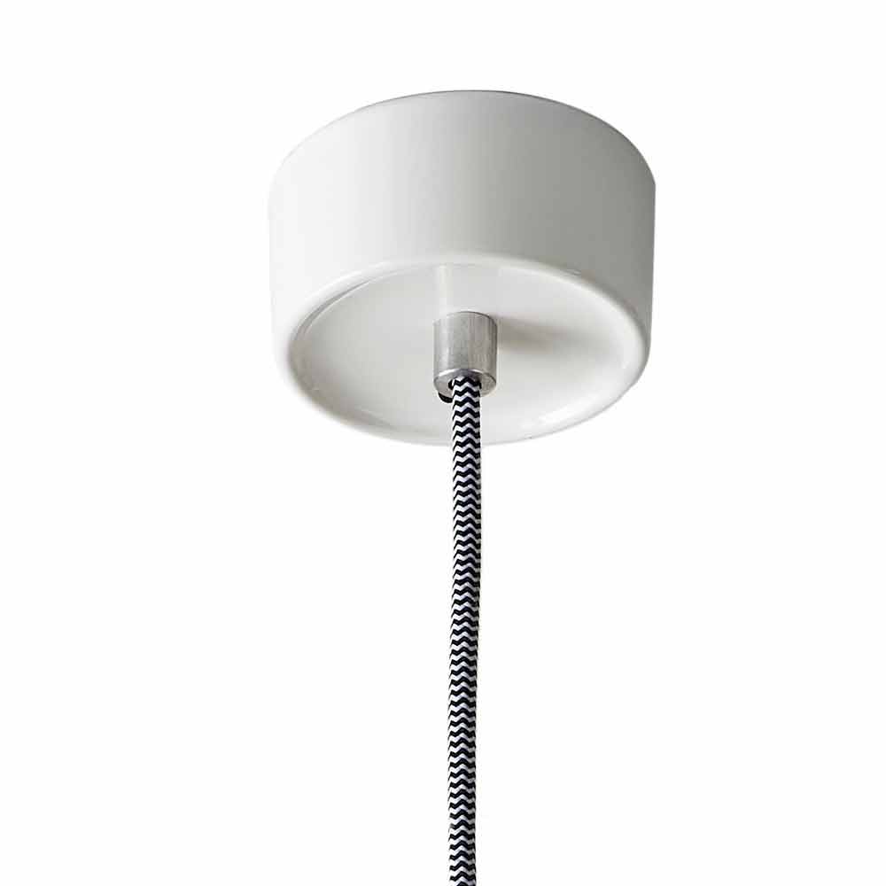Fabricado na Itália por artesãos especializados em cerâmica branca e cinza, com cabo de pano preto e branco e braçadeira de cabo de alumínio.