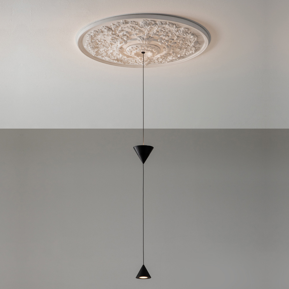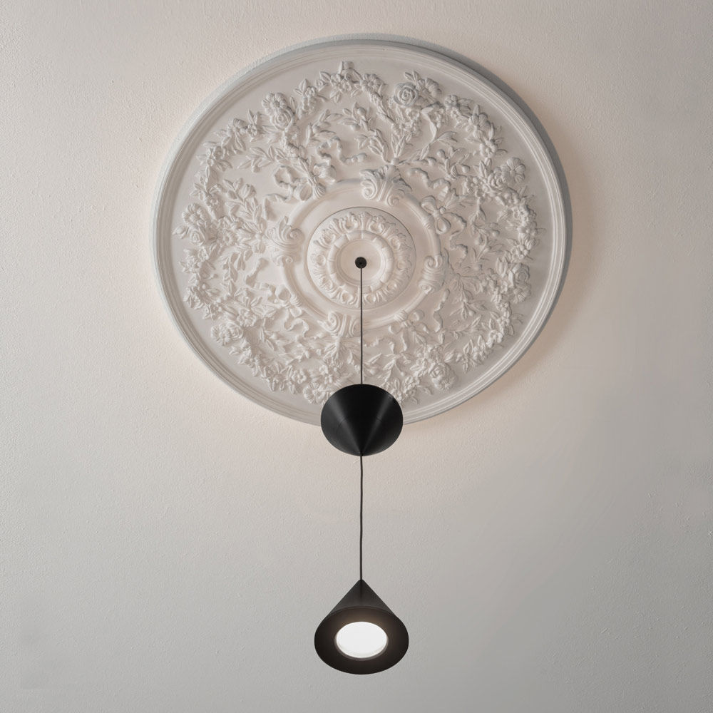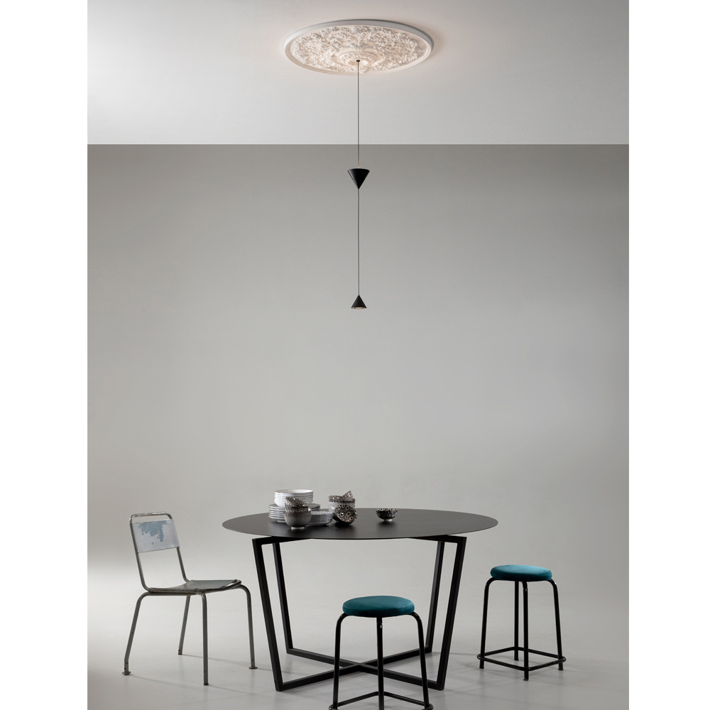 O candeeiro é feito com uma estrutura de gesso e alumínio de design inteiramente italiano que, através da experimentação pouco convencional e da pesquisa contínua entre tradição e modernidade , consegue surpreender, ousar e emocionar, permitindo-lhe expressar as suas emoções através de uma utilização decorativa original e pessoal de luz.