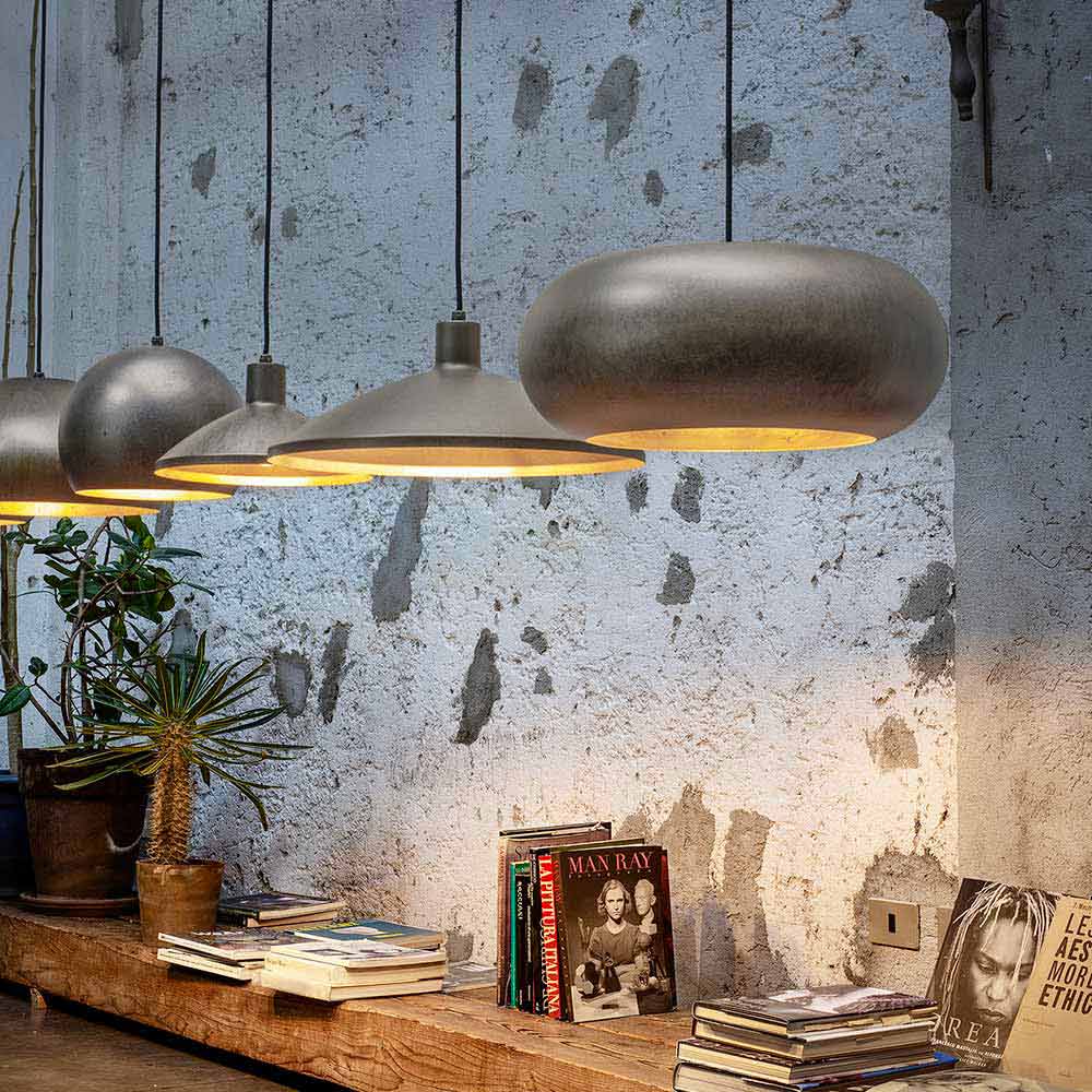 Candeeiro de suspensão em aço com design Materia de Aldo Bernardi, fabricado na Itália.