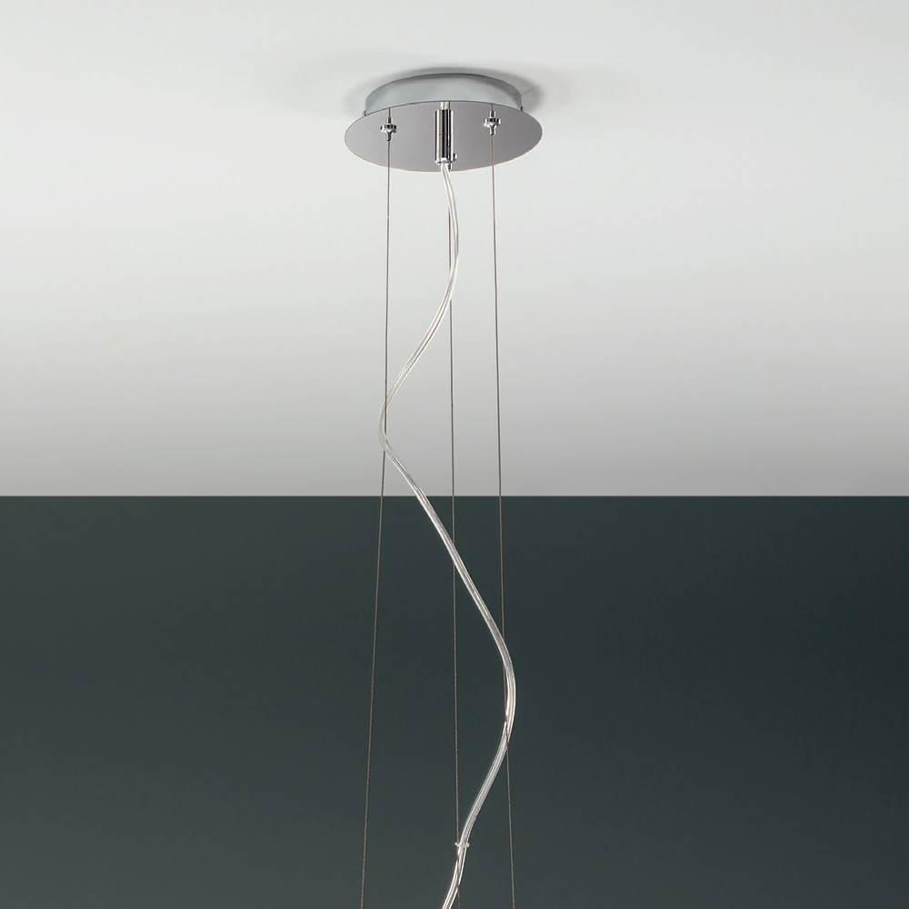 metal cromado e difusor de vidro jateado branco soprado completo com cabos ajustáveis em comprimento. Ideal para quem procura um estilo