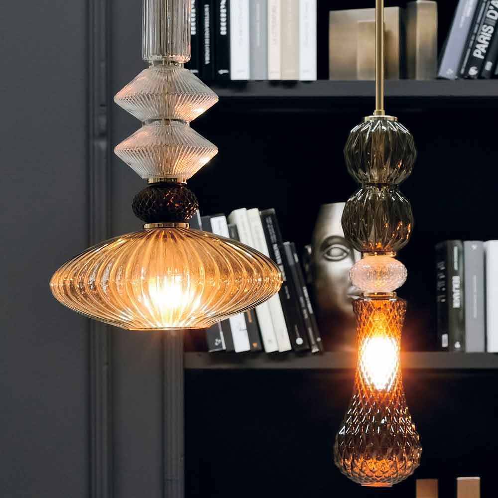 Candeeiro suspenso em vidro de Murano com decoração antiga, detalhes em ouro e cabo em tecido antracite , Fabricado na Itália. O encontro entre a elegância atemporal do vidro de Murano e o toque refinado dos elementos dourados trazem à vida uma solução de mobiliário particularmente inovadora , pois é capaz de reunir modernidade e tradição para um resultado exclusivo e vanguardista que consegue completar o moderno e o moderno. espaços clássicos com personalidade. Graças à opção de jogar em formas geométricas e acabamentos diversos, o que nasce é uma ideia de iluminação com efeito dinâmico que cria um ambiente caloroso e acolhedor ao mesmo tempo que enriquece a estética da divisão.