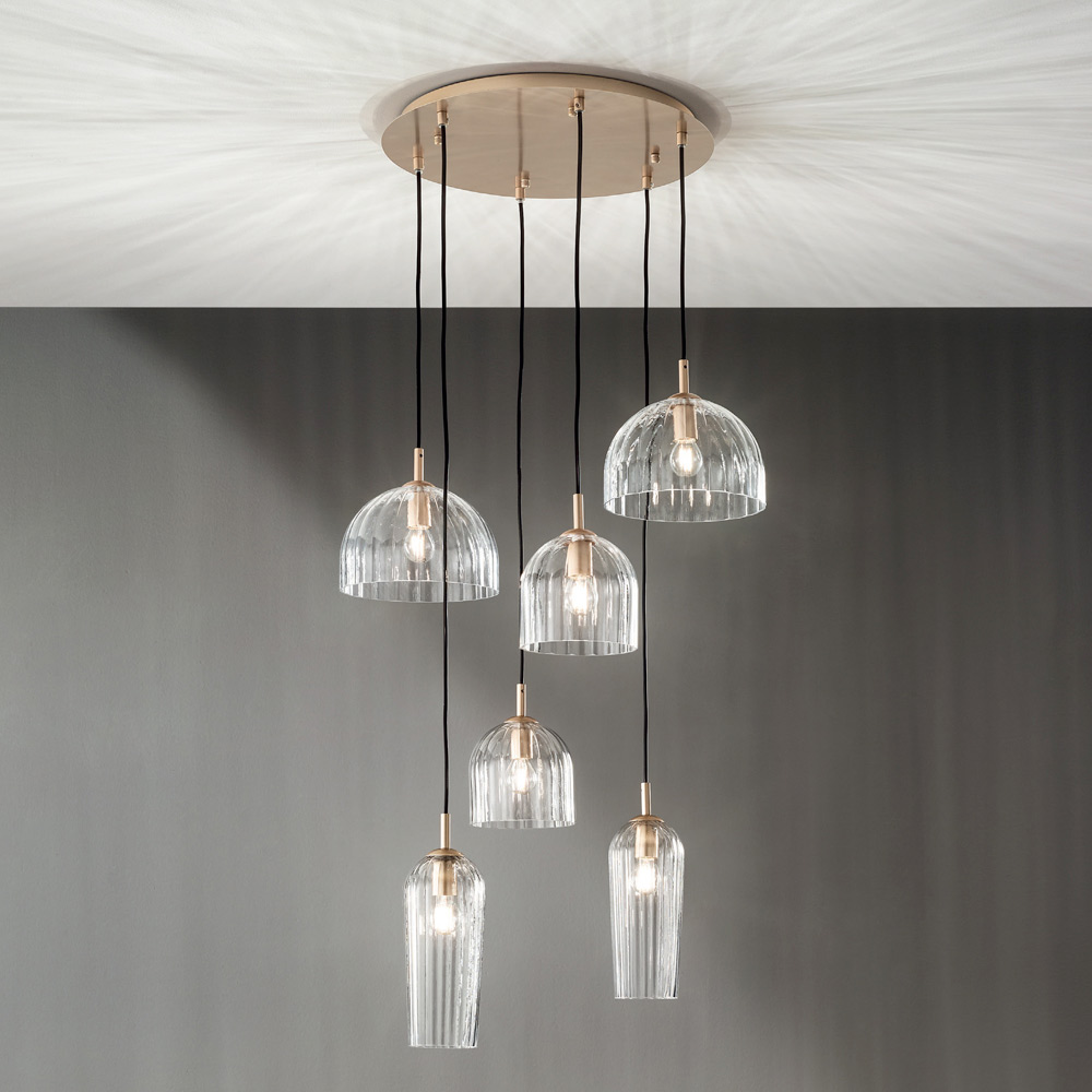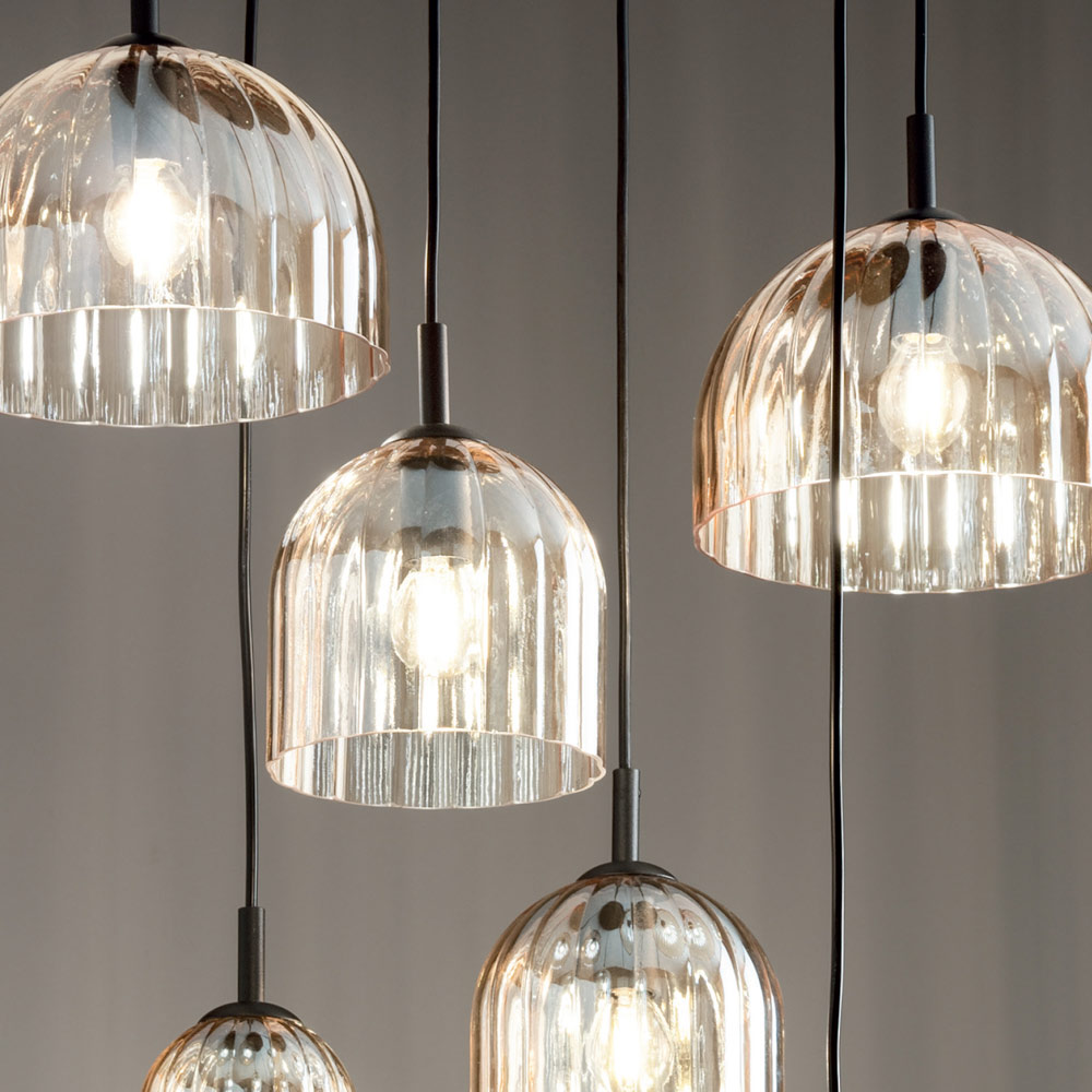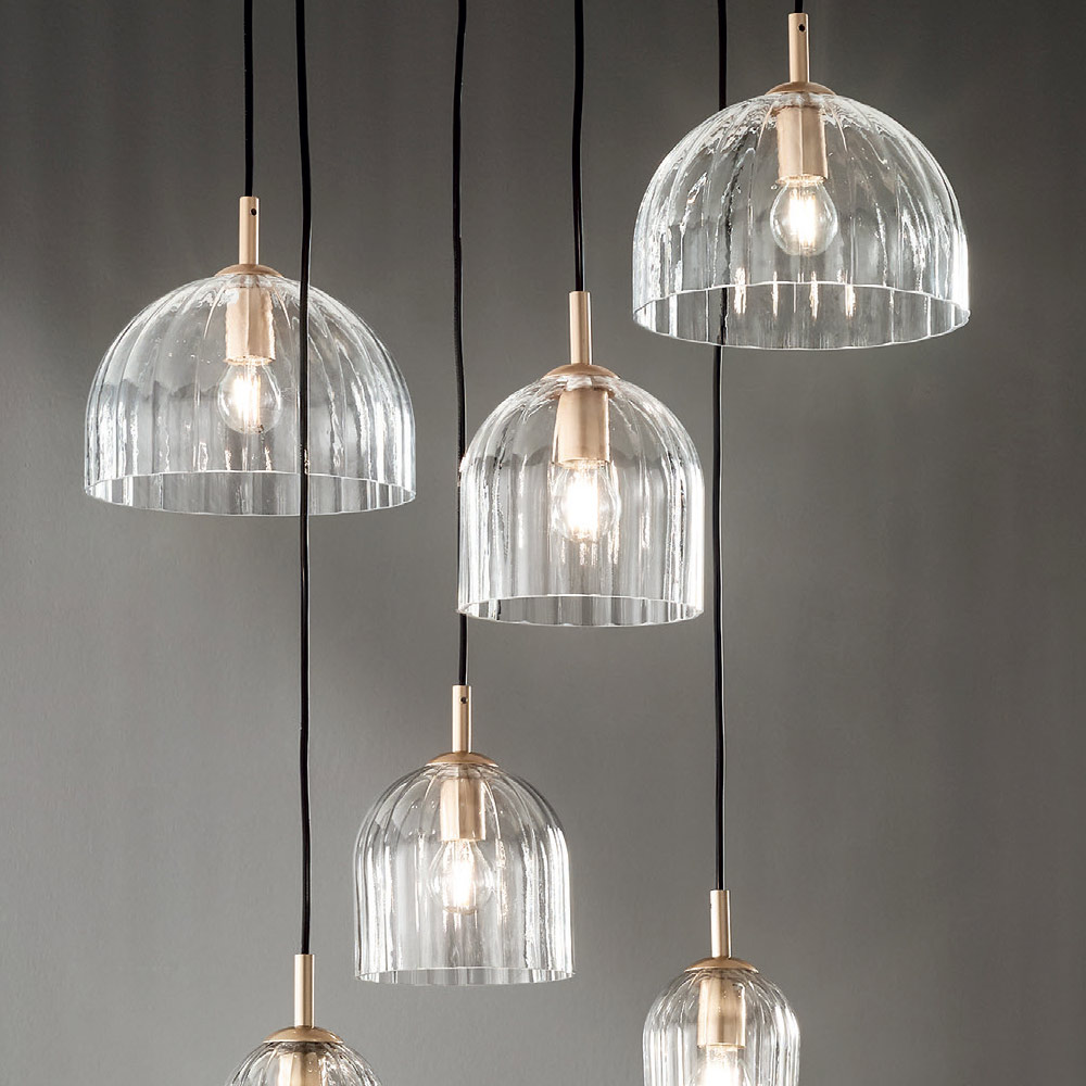 design contemporâneo e vanguardista . Os maravilhosos abajures de vidro soprado em diferentes formas e tamanhos conferem personalidade à luminária e destacam sua elegância. Os acabamentos propostos, por outro lado, completam a estética final do produto, marcando a sua singularidade e criando um