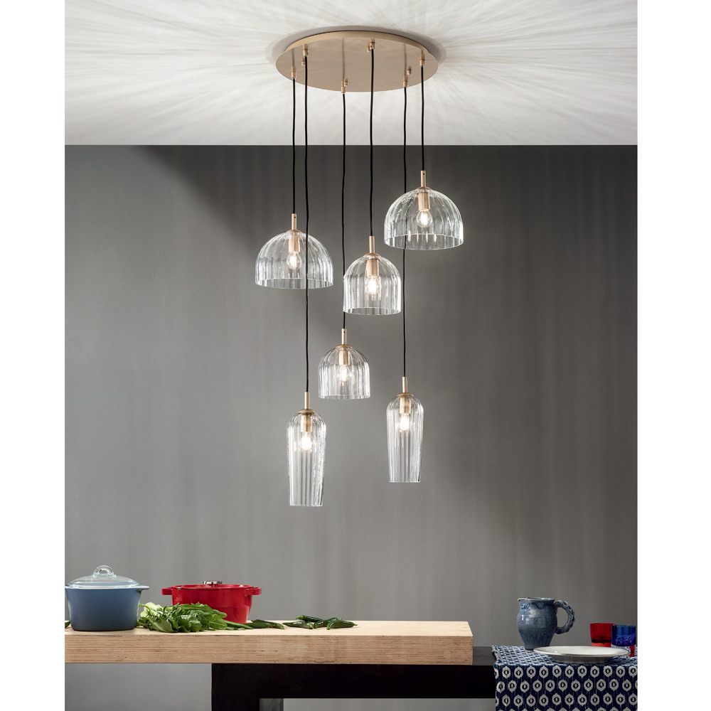 abajures de vidro soprado às riscas com cabos reguláveis no comprimento. Um elemento decorativo
