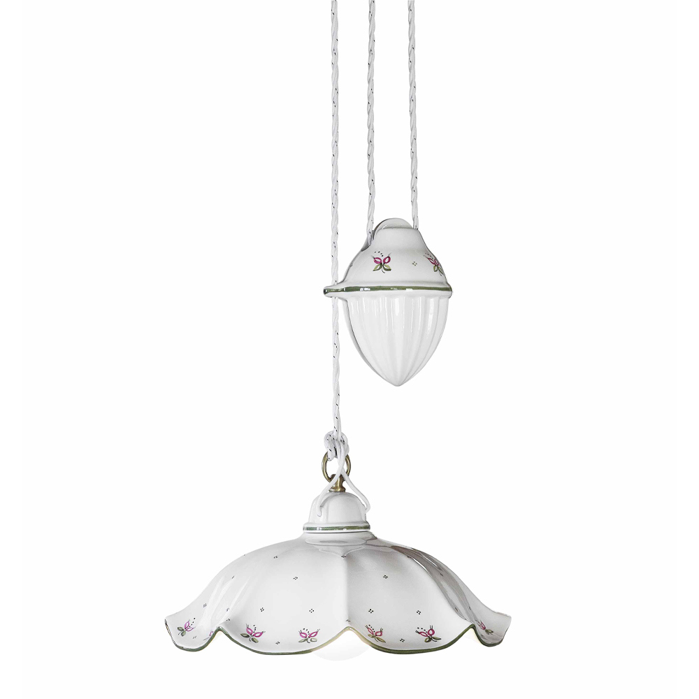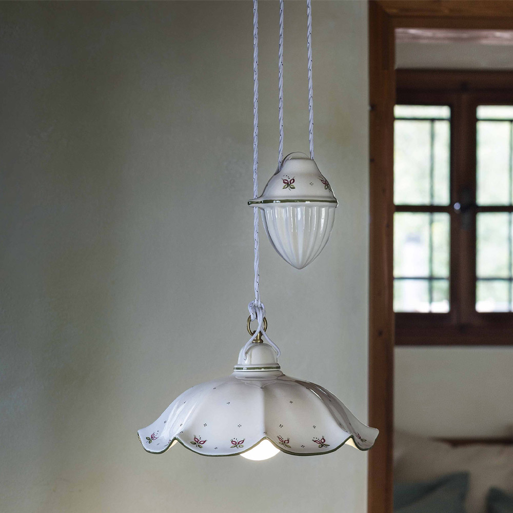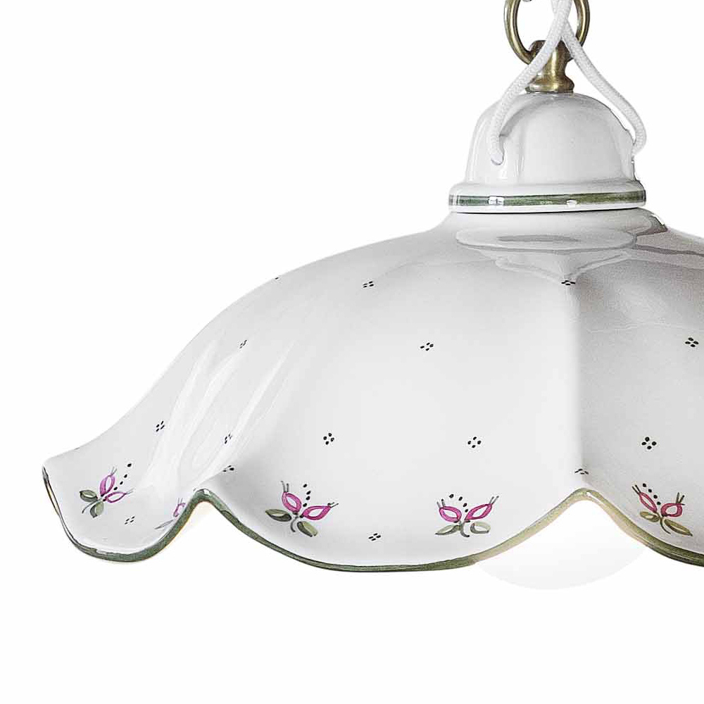 Candeeiro de suspensão com cerâmica ondulada pintada à mão feita na Itália por Ferroluce.