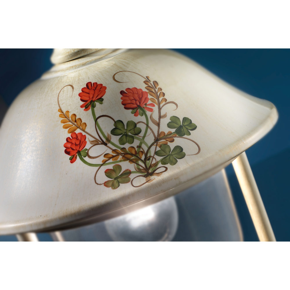 Este candeeiro de suspensão exterior é inteiramente feito de alumínio decorado com flores pintadas à mão para um estilo clássico e harmonioso entre forma e cores.